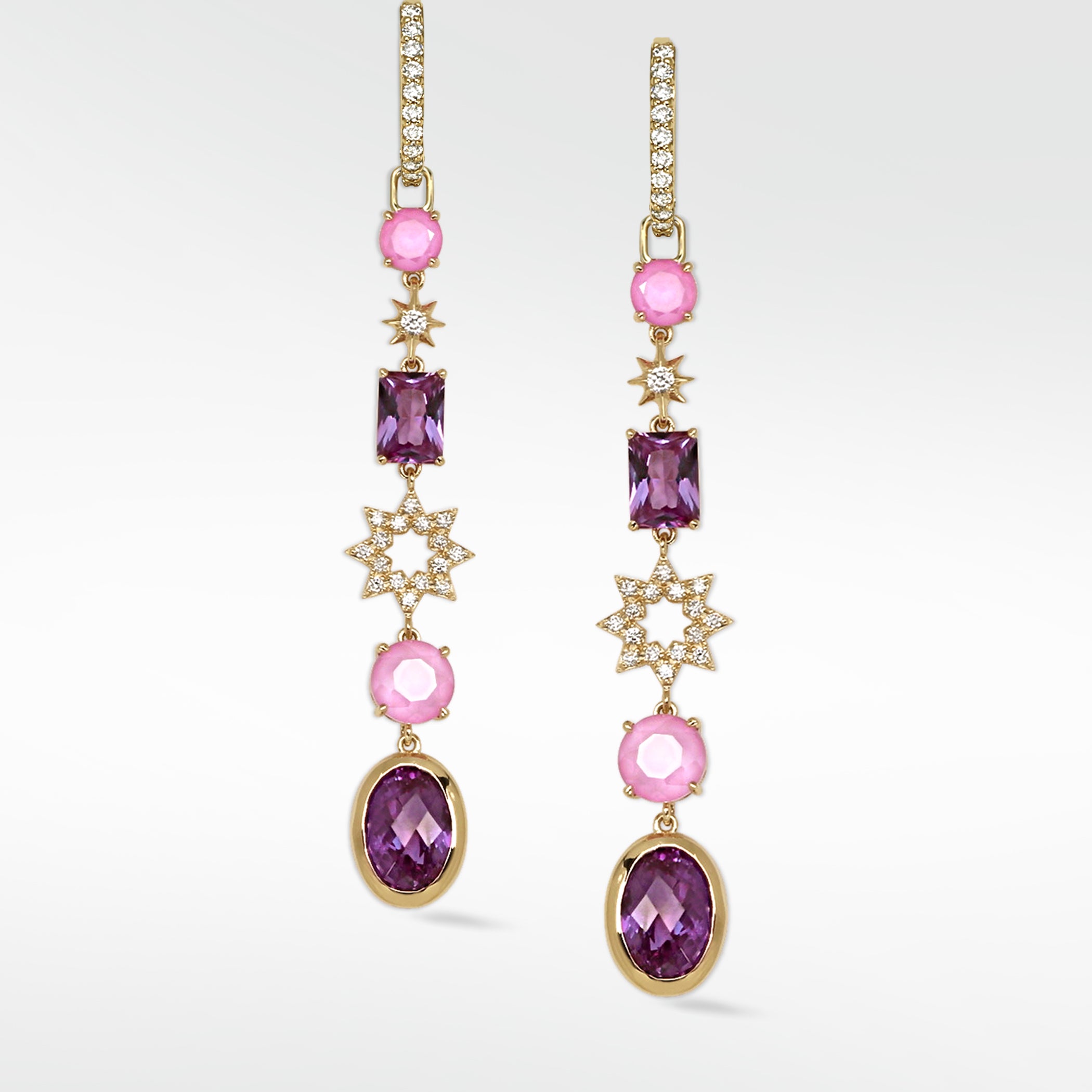Each metal type brings forth unique characteristics. White gold, with its sleek appearance, harmonises beautifully with the sparkle of diamonds. Yellow gold exudes classic elegance, injecting luxury into your earrings. Rose gold imparts a romantic and modern aesthetic with its pinkish hue, while platinum, known for durability and hypoallergenic qualities, is an excellent choice for sensitive skin.