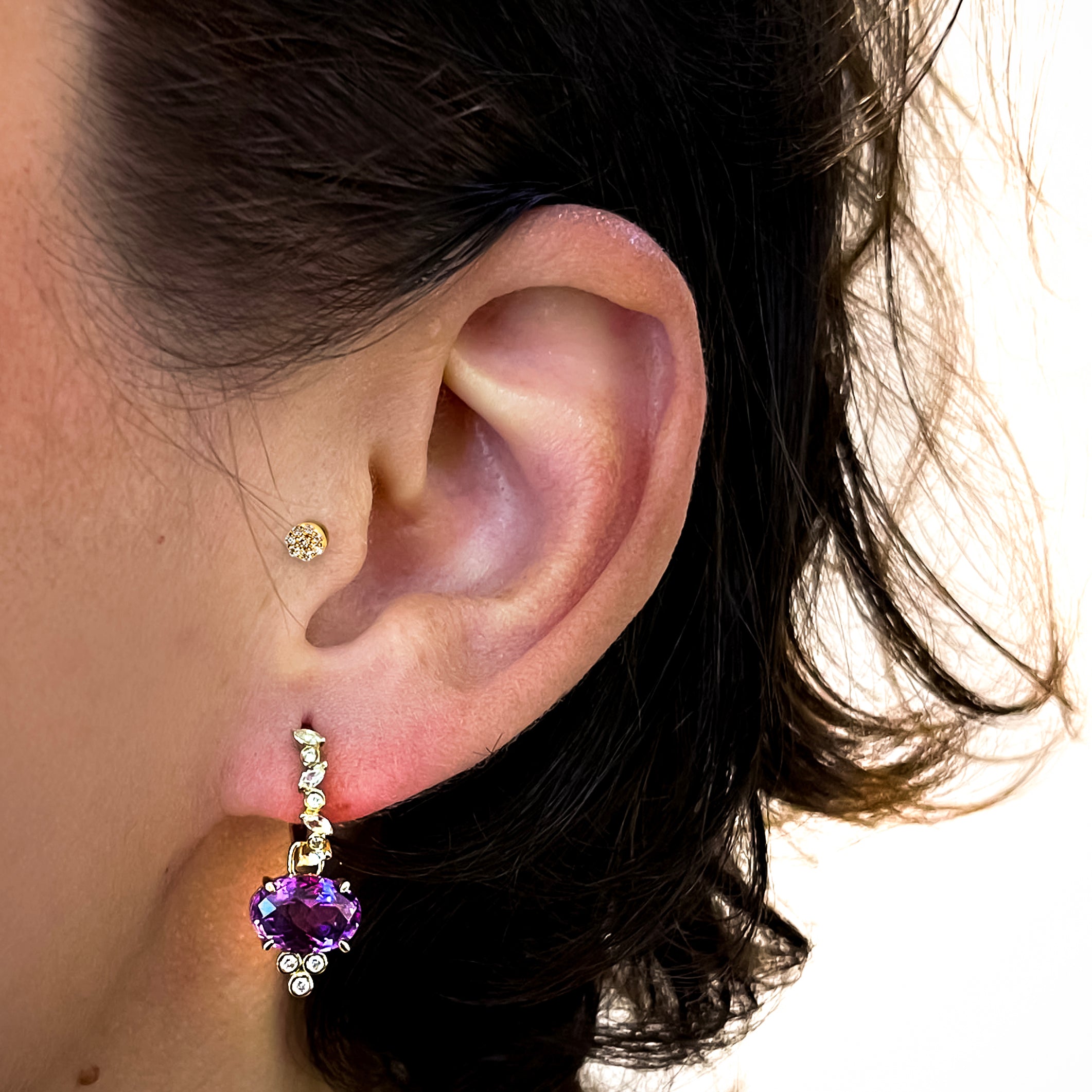 Pair of Grown Diamond Earrings: A pair of matching diamond earrings, whether in stud or drop style, is a classic and versatile choice. This style offers symmetry and balance, making it suitable for various occasions, from everyday elegance to special events.