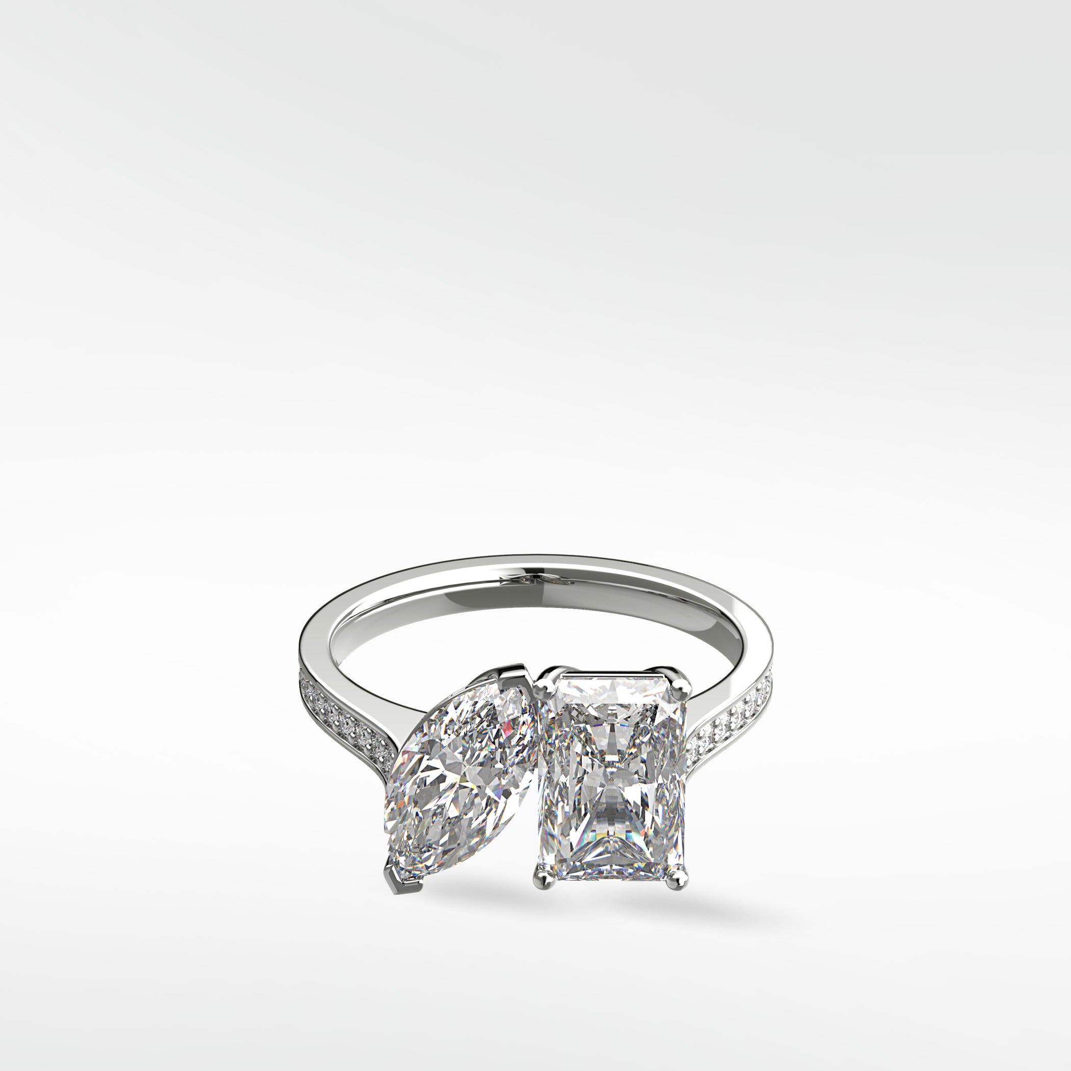 A Toi et Moi ring, translating to "You and Me" in French, is a distinctive two stone engagement ring featuring two stones that symbolise the union of two souls and their intertwined journey.
