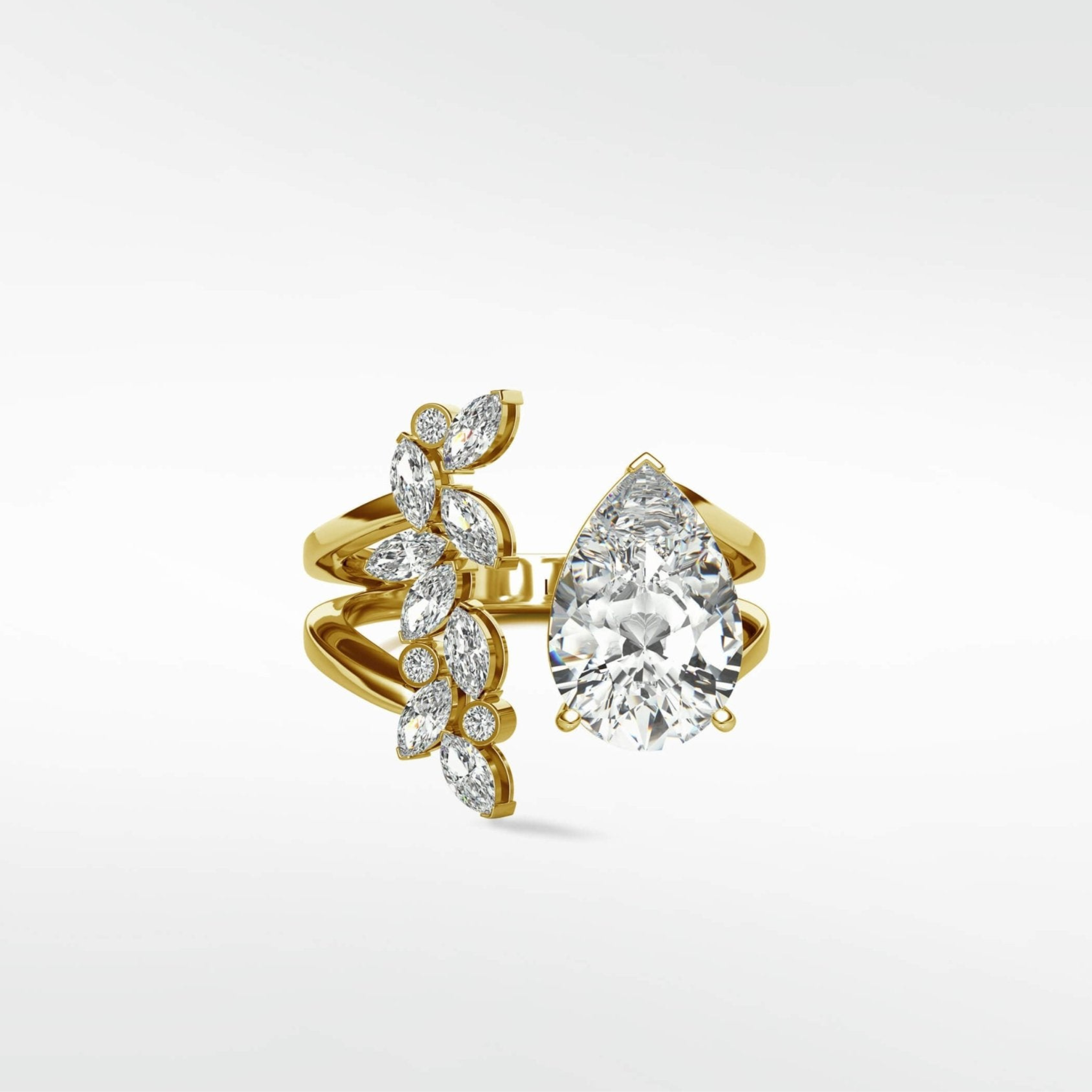 Symmetry and balance between the stones are crucial considerations in Toi et Moi engagement rings. Ideally, the shapes of the diamonds should harmonise to create a cohesive look. For instance, pairing two round diamonds or combining a pear-shaped diamond with an oval can achieve striking visual balance.