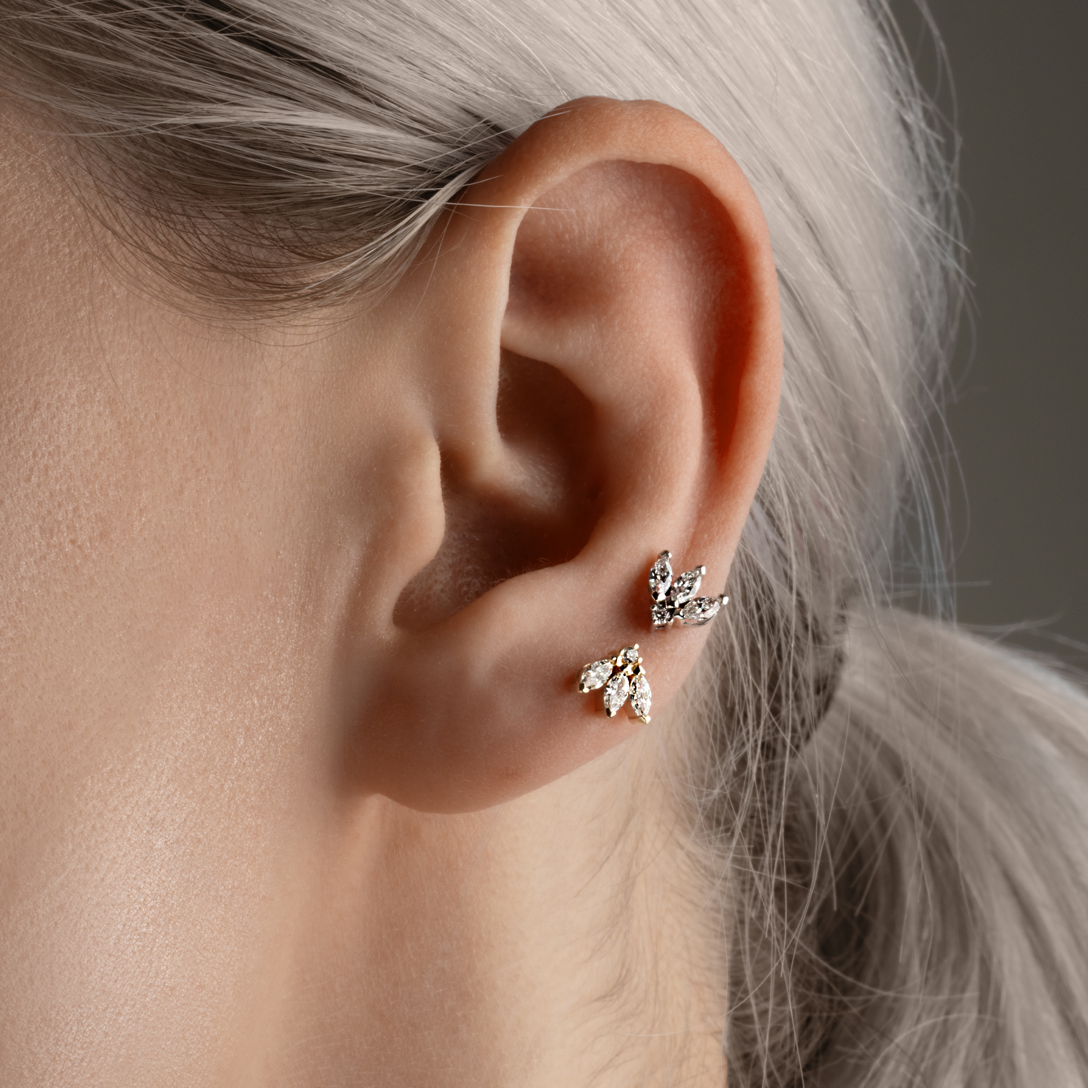 If you're ready for a new piercing, our stylist can safely perform it right away. But no piercing? No worries! We specialise in transforming your ear style even without adding new piercings—using our stunning collections. - Leave Styled and Sparkling: