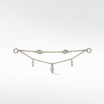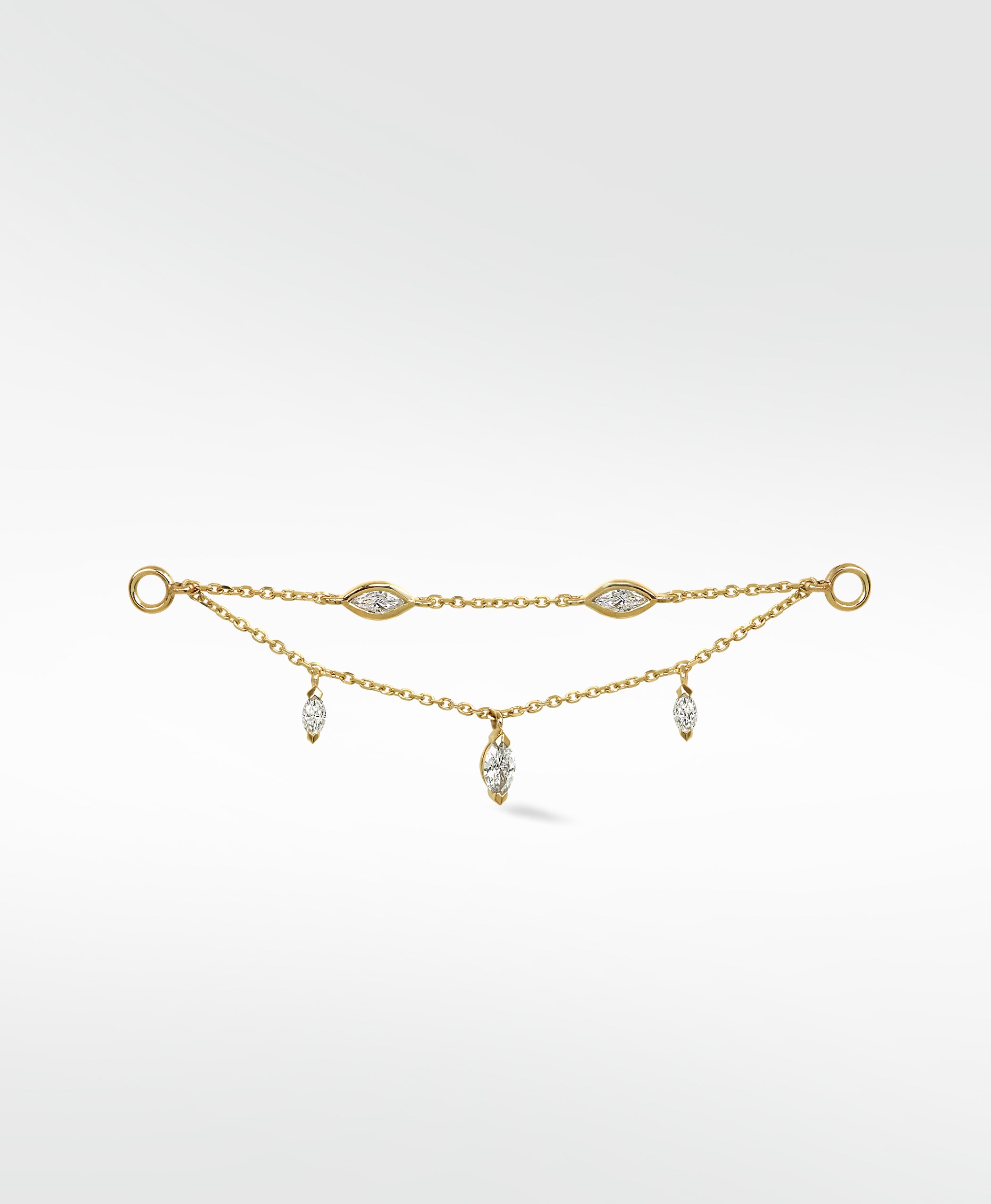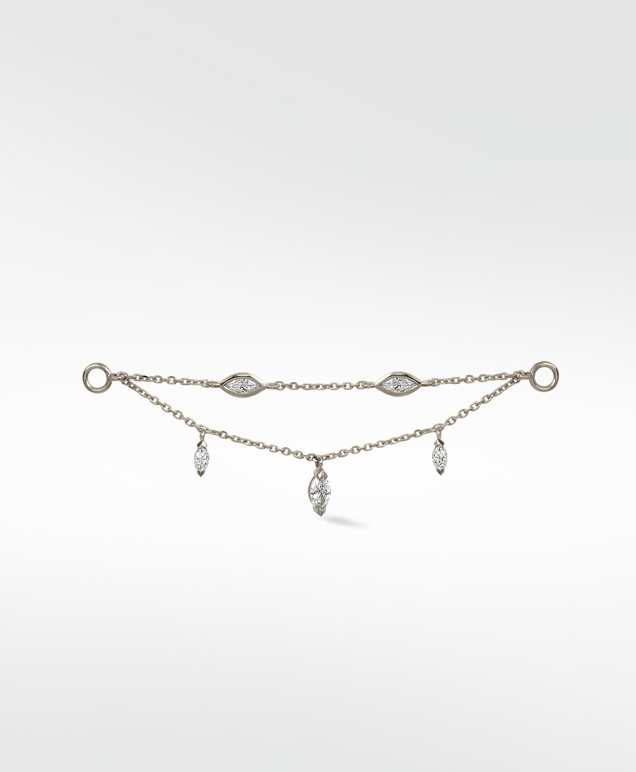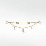 Delicate and versatile, the Double Diamond Drop Chain connects effortlessly to studs or hoops, showcasing two radiant diamonds that cascade gracefully along a fine chain. Sleek, contemporary, and timelessly elegant, it can be worn on a double stud for subtle sparkle or layered with hoops to create a striking, sophisticated statement — perfect for elevating any look, from day to night.