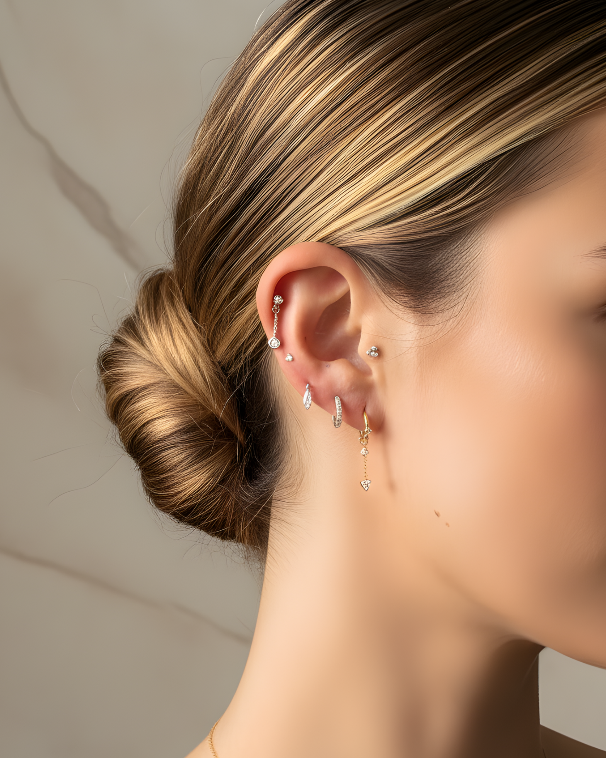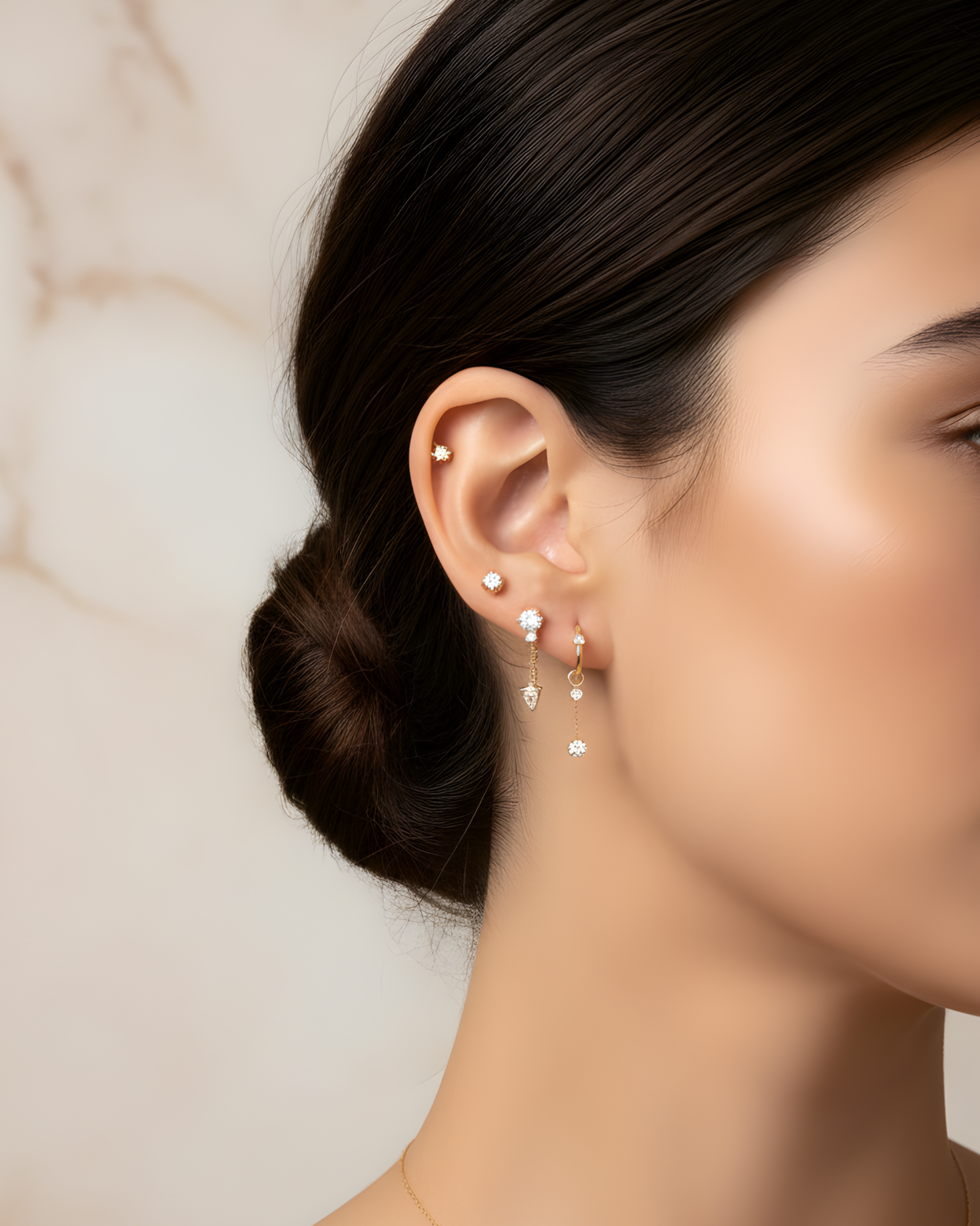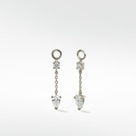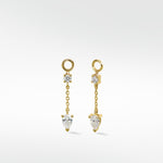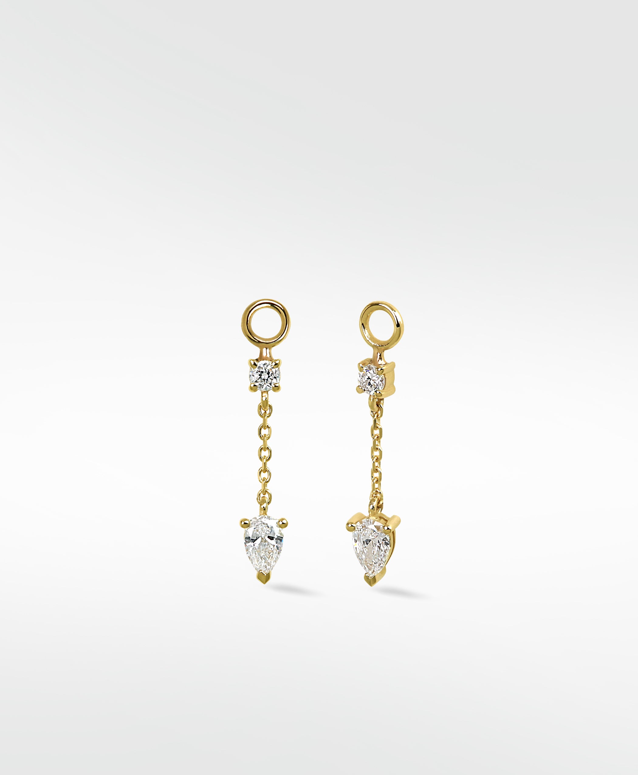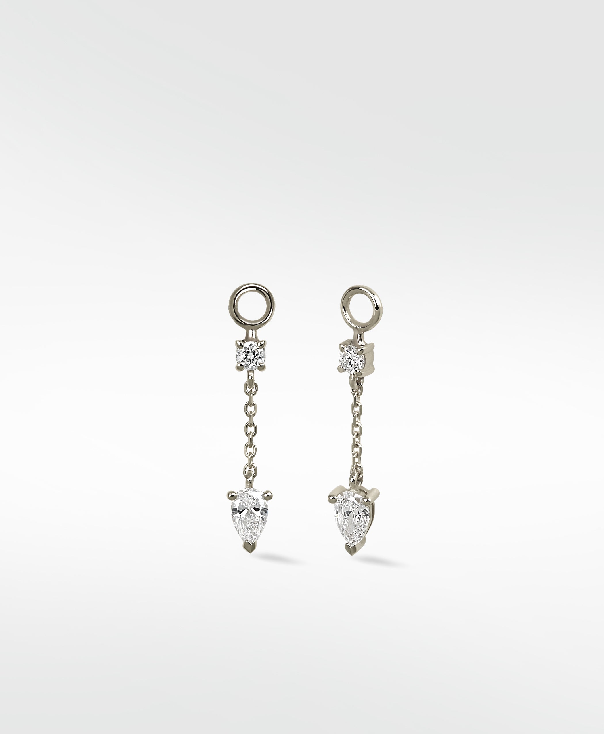 Perfect your style with the Falling Pear Diamond Chain, a delicate piece designed to attach seamlessly to a hoop or stud. The two diamonds glide gracefully along the chain, catching the light with every movement and creating an elegant, cascading effect. Perfect for layering with other earrings this versatile piece adds a modern, sophisticated touch to any look — from everyday elegance to evening glamour.