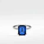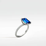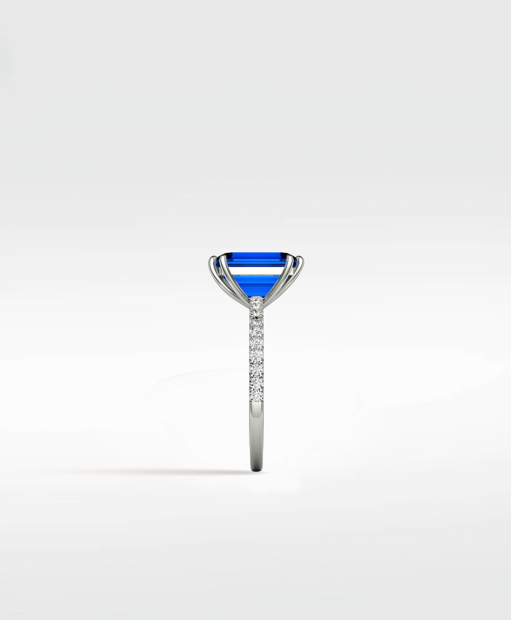 The ring pictured is a size UK 0.5 (US 7.5) with a 1.5ct Emerald Cut diamond centre stone.