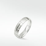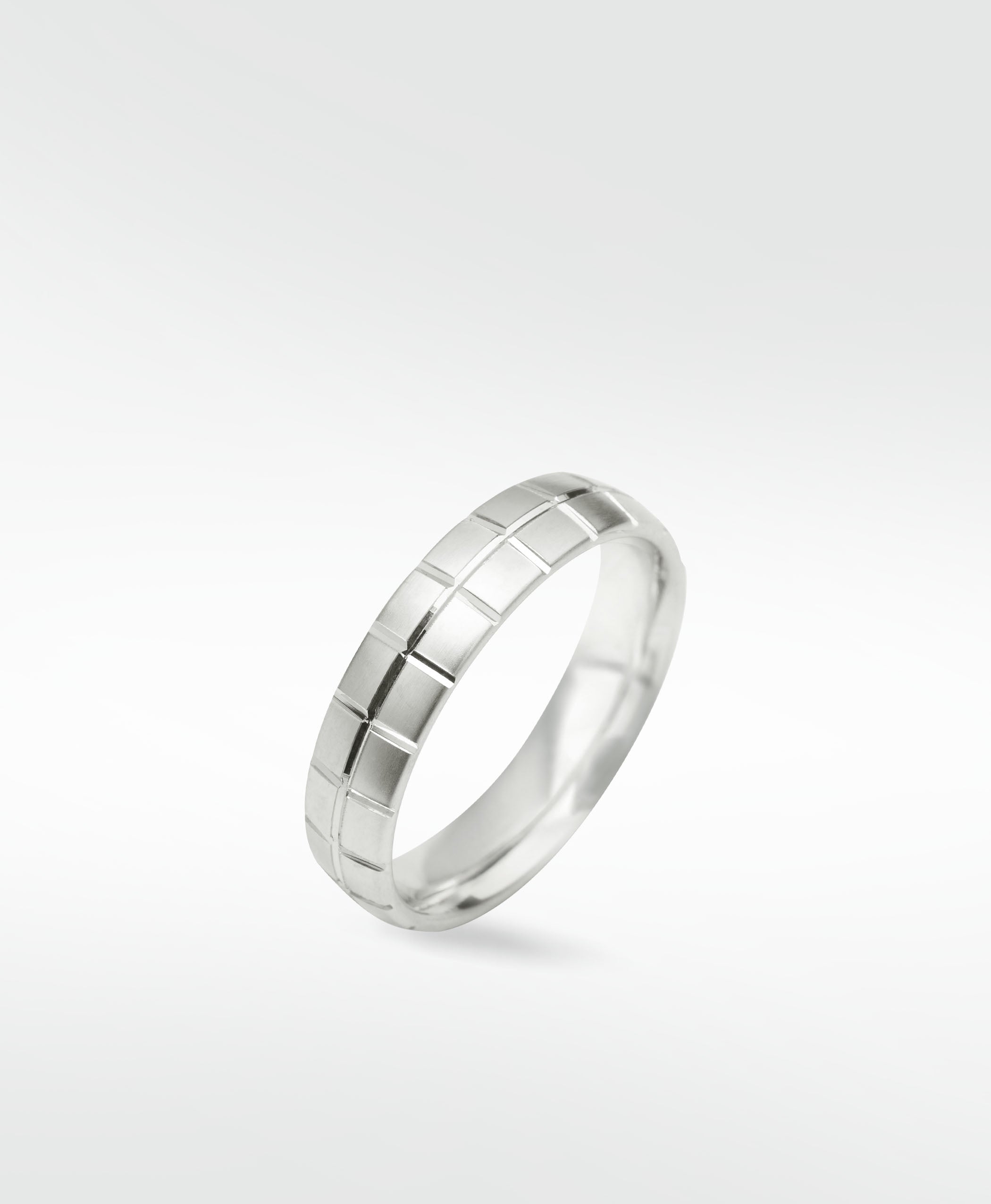Classic and clean, this simple yet stylish wedding band is definitely one you will not want to take off. With a comfort fit centre, satin finished and engineered detailing, its a modern twist on the classic wedding band. Available in white, rose or yellow gold, or platinum, and also a variety of widths, just get in touch for a personalised quote.