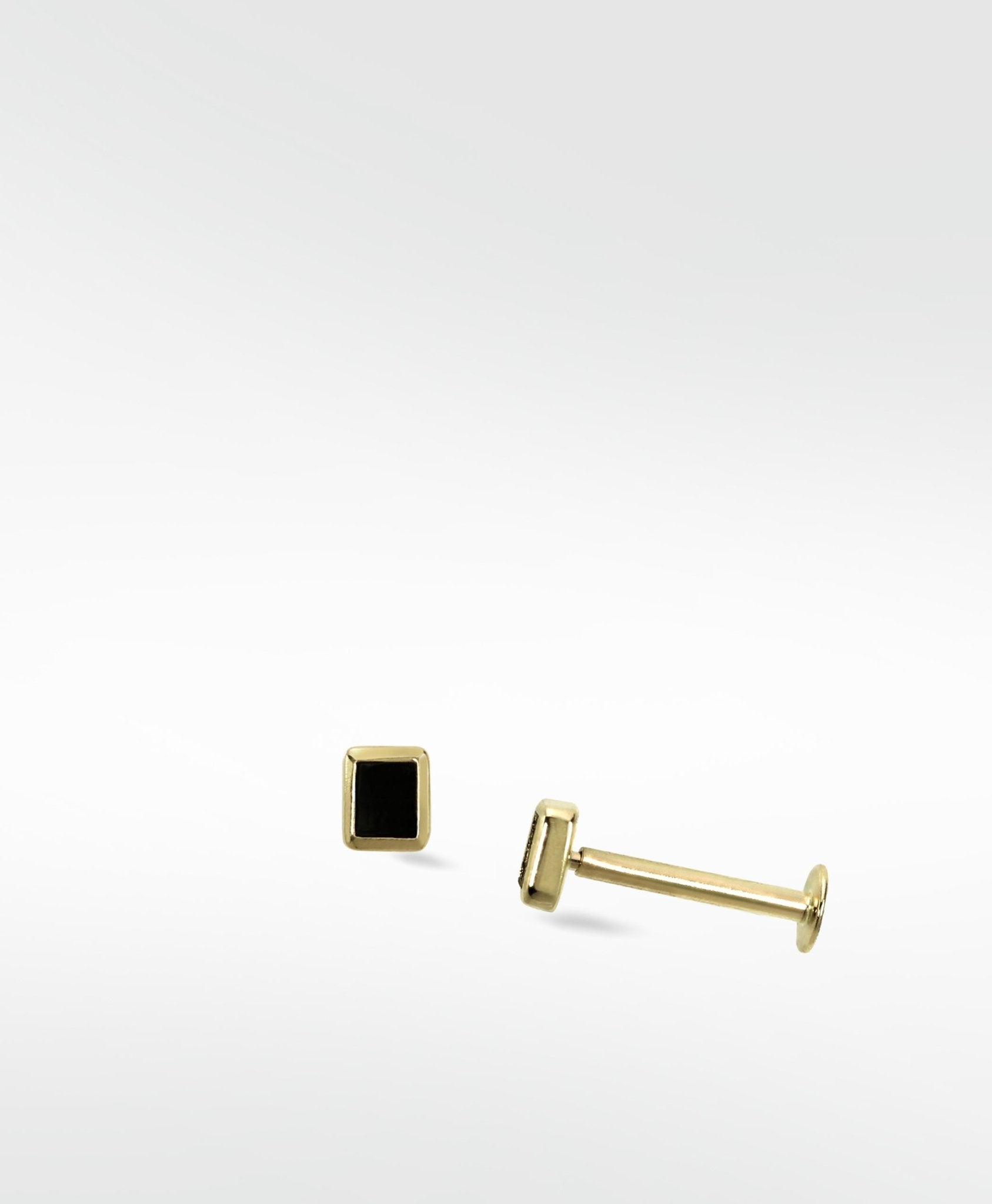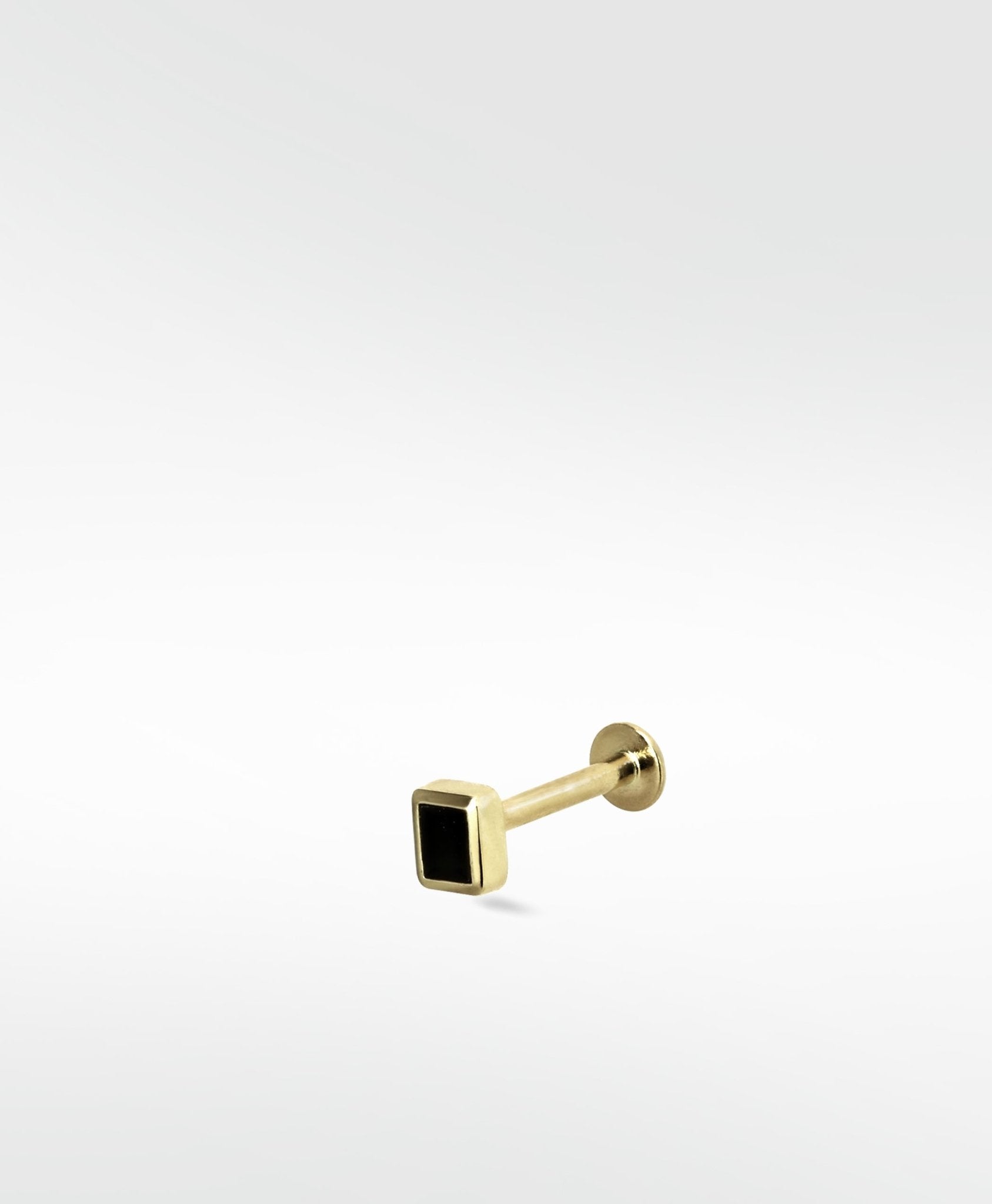 Dark as the night sky and encased in exquisite gold, the Eclipsis Onyx Labret's sleek finish is stylish yet subtle - an easy addition to your piercing collection. Why not pair with the Eclipsis Mother of Pearl Labret for the ultimate laid back look.