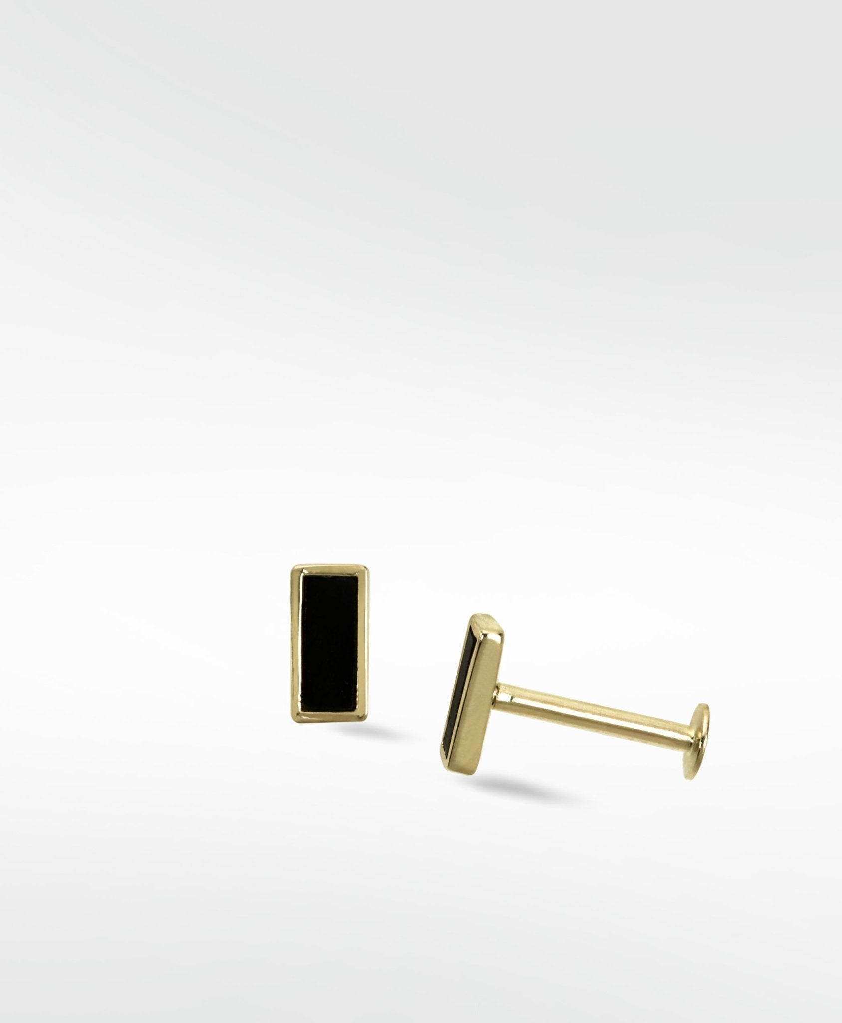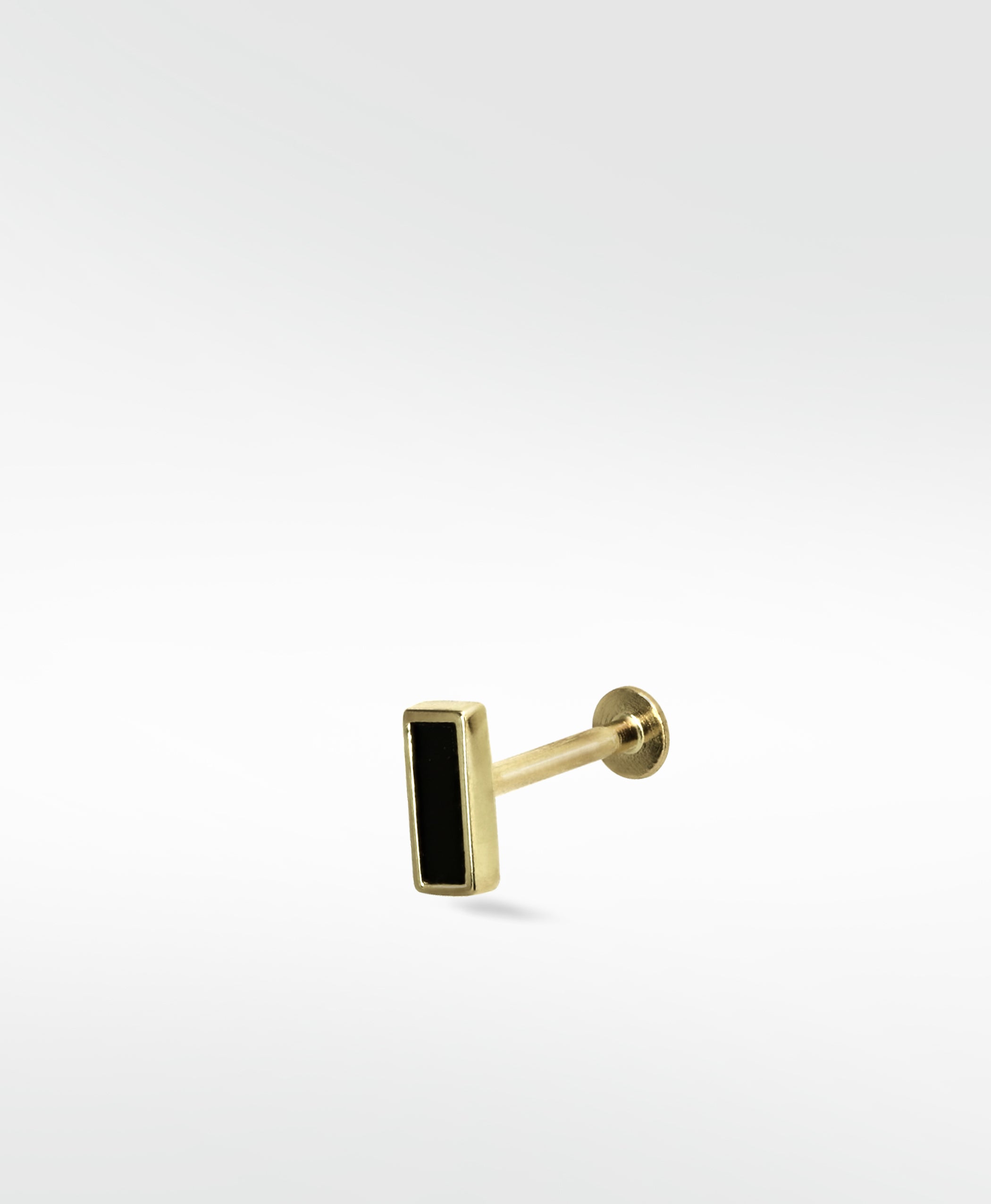 The Eclipsis Onyx Oblong Labret's deep black sheen makes it the perfect piece to elevate your piercings game. Glistening 14k yellow gold contrasts with onyx for a perfect first piercing or a great one to stack on your ear with others.