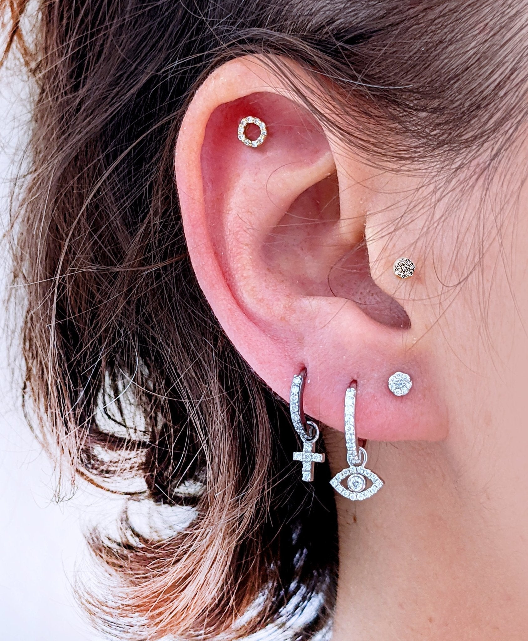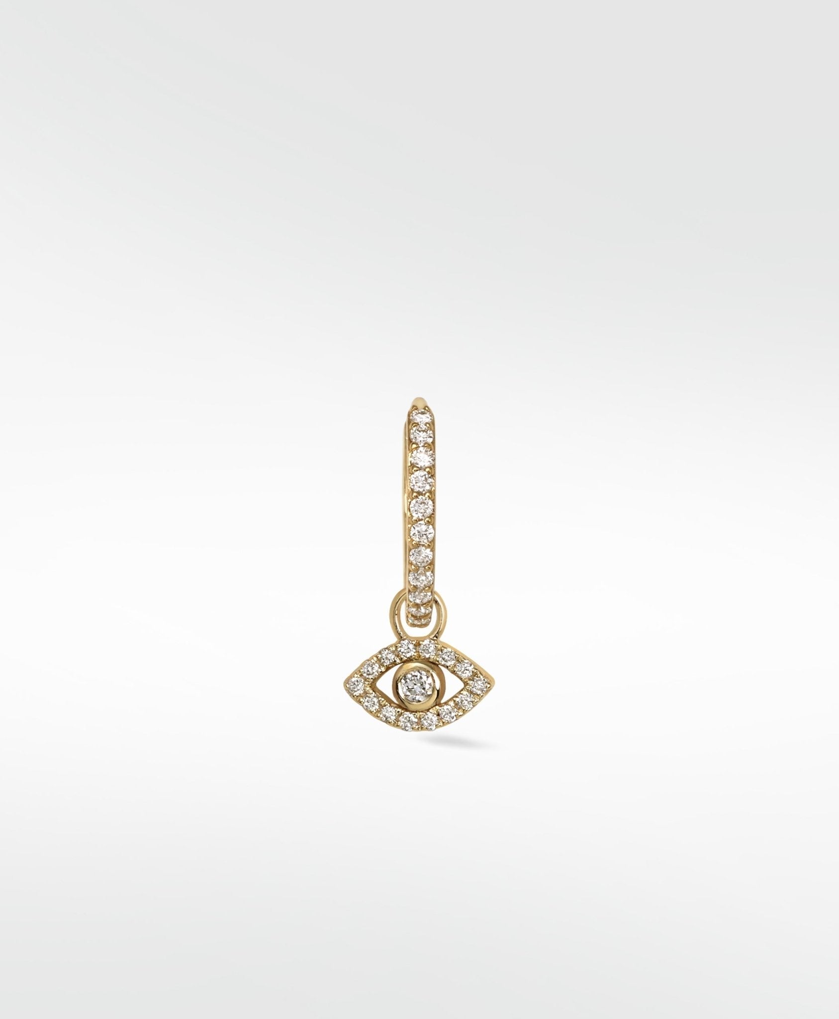 It's said that the "Evil Eye" charm has traditionally been adopted by many cultures as a symbol of protection against harm where envy is inflicted... let's hope the legend is true, because with this dangling from your ear, you'll need a guard against all jealous, prying glares.