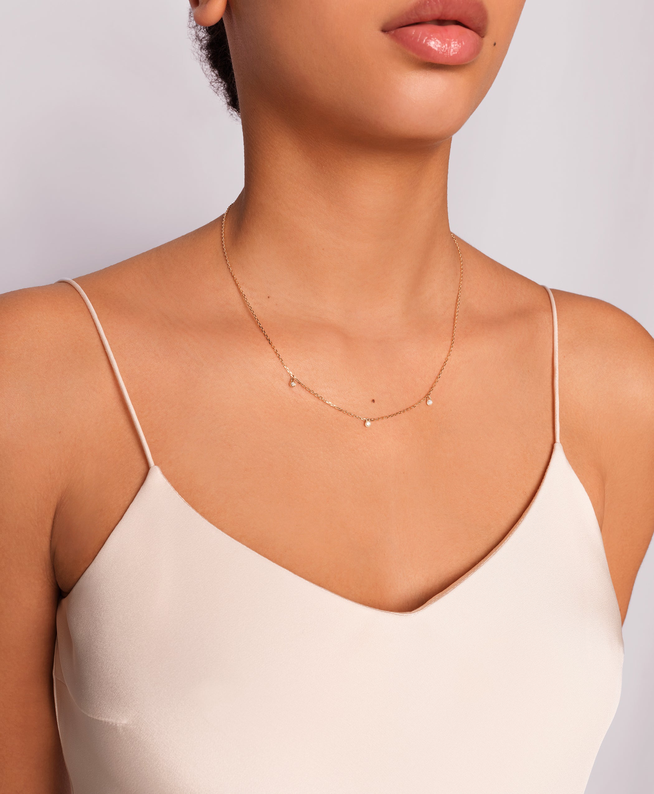 The dangling diamonds found on this Gold necklace were inspired by the classic craftsmanship of grandfather clocks - presented here with a modern twist and design flair. Sport these eye-catchers, and it'll always be time to get noticed.