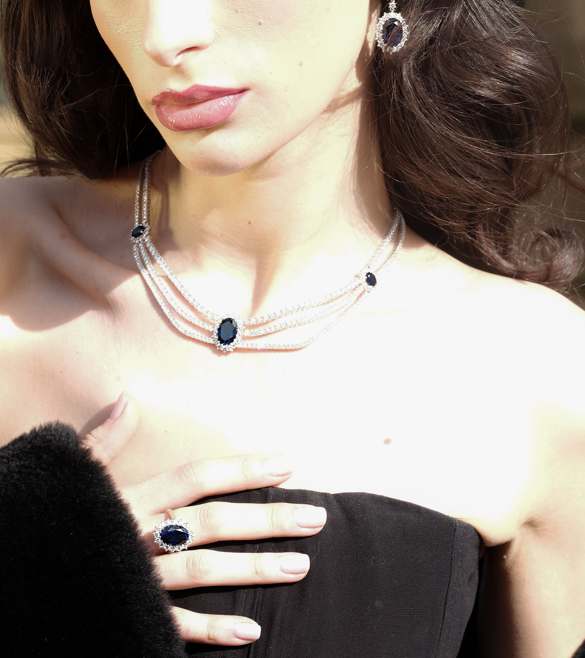 Kensington Icons - This is elegance in its most refined form. Inspired by the grandeur of Kensington’s tree-lined avenues and royal residences, this necklace radiates an understated sophistication. A lab grown deep blue sapphire centerpiece — as rich and mysterious as twilight over palace gates — is flanked by cascading rows of brilliant diamonds, each one precision-set to catch the light with grace.