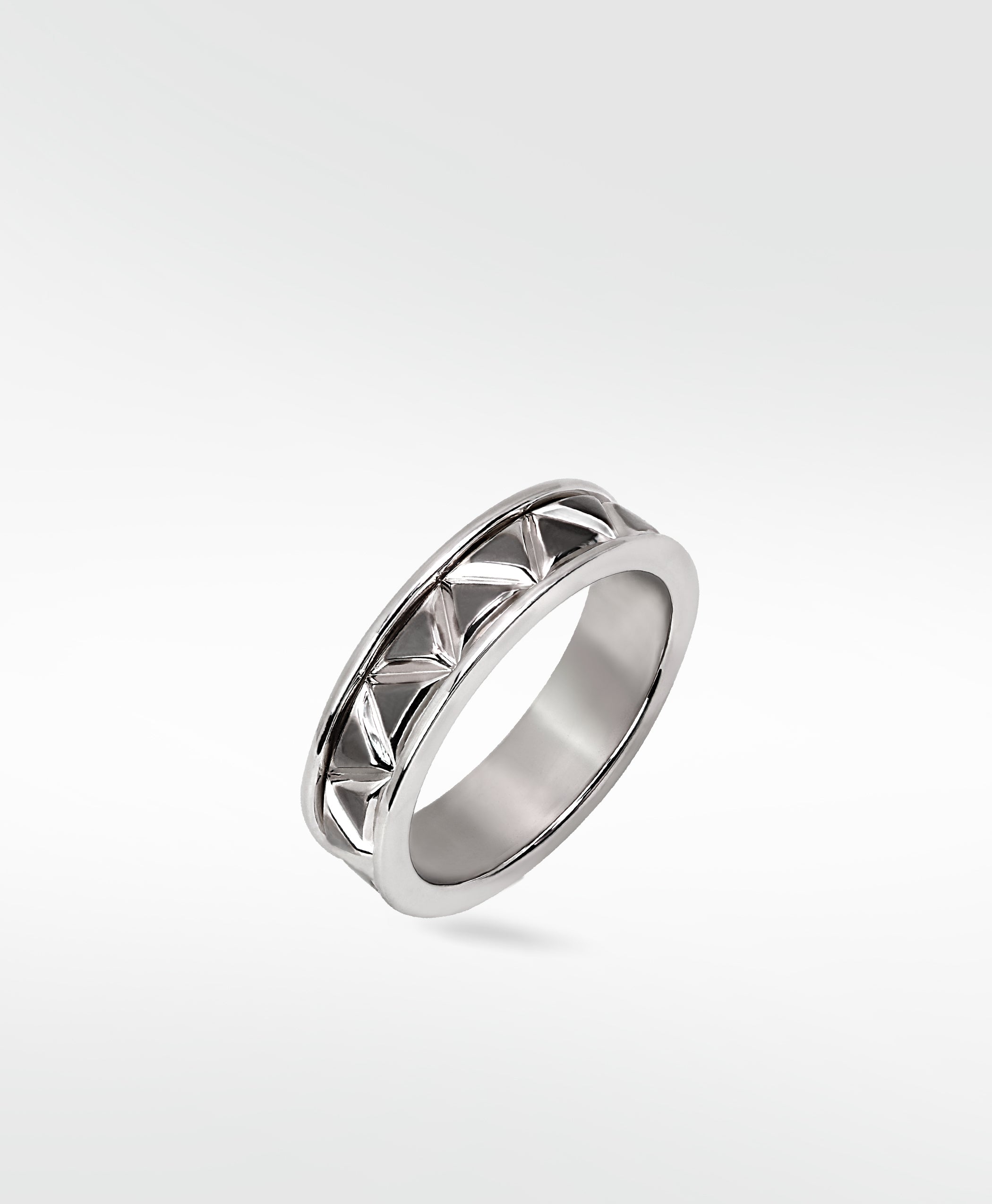 American Artist Sol LeWitt created 1,350 wall drawings across a four decade career - everything from straight lines in black pencil lead to monochromatic geometric forms and brightly coloured shapes in acrylic paint. LeWitt's most beautifully minimalist forms inspired the triangles in this sterling silver ring's striking geometry.