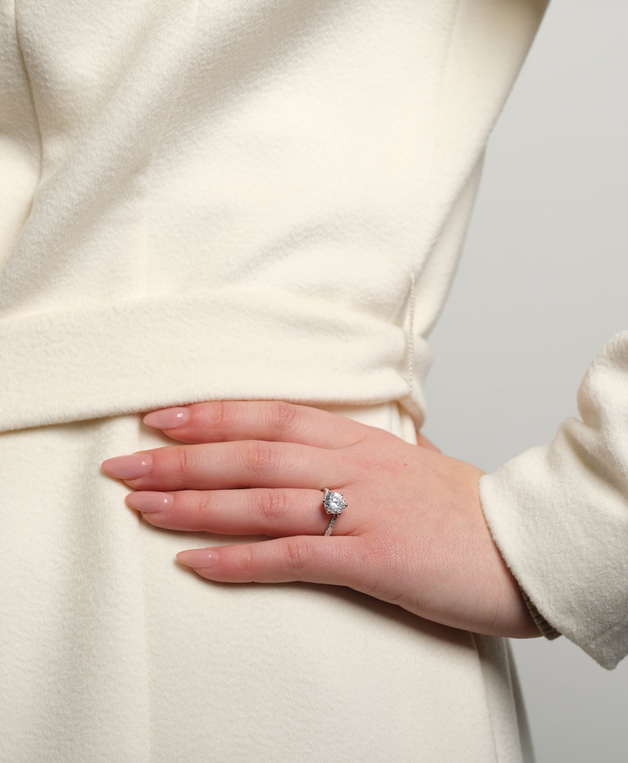 Add this setting to cart then choose your diamond below. The ring pictured is a size UK O (US 7 1/4) with a 1.25ct Brilliant Cut diamond centre stone.