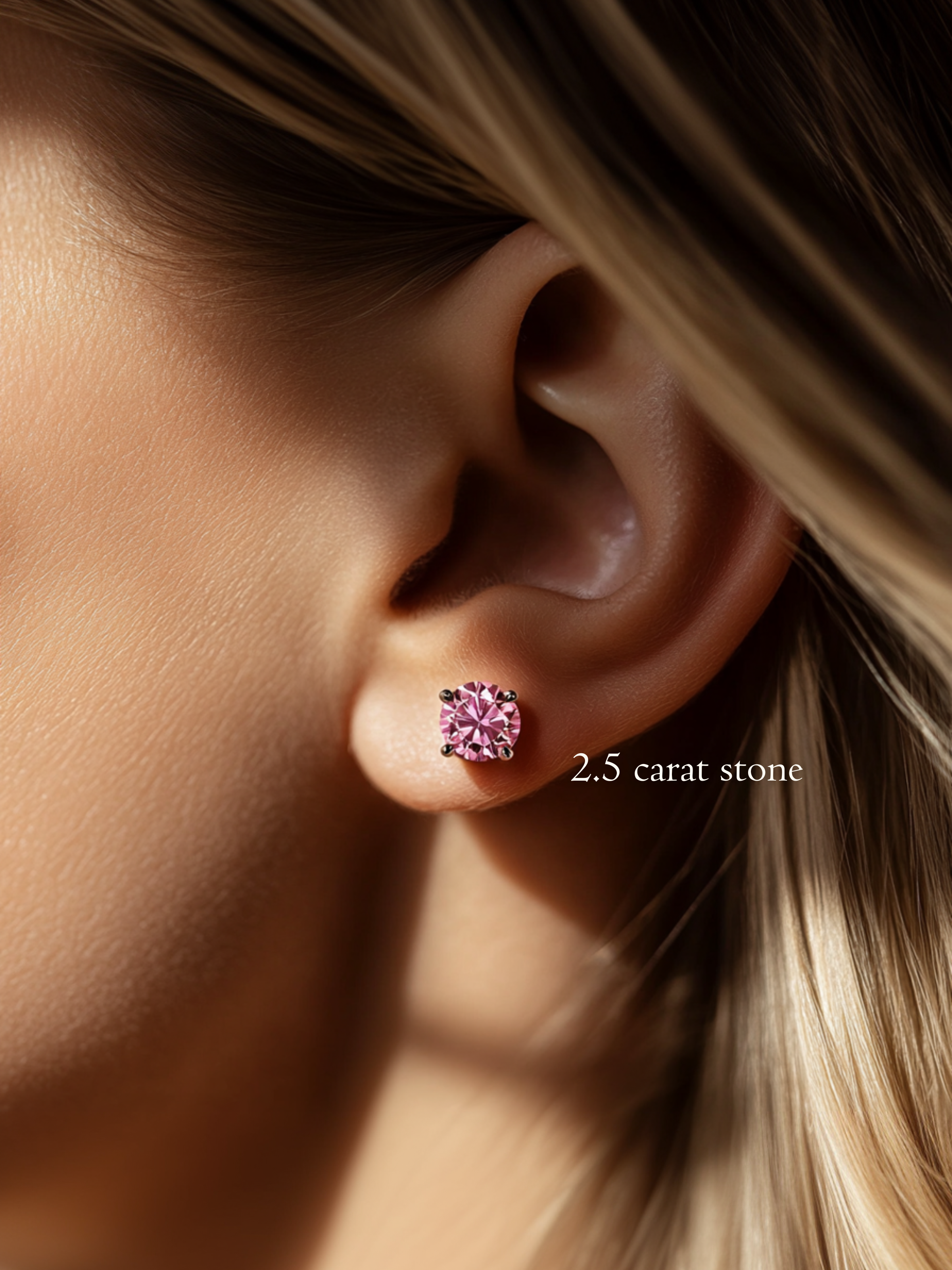 Lime Pink Diamond Stud Earrings Brilliant Round Cut