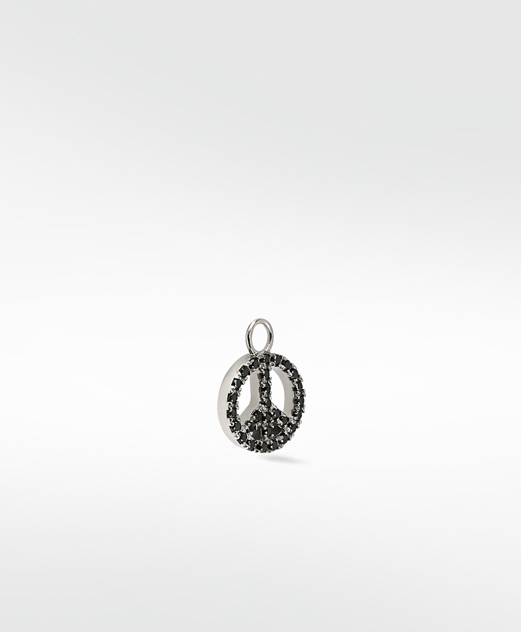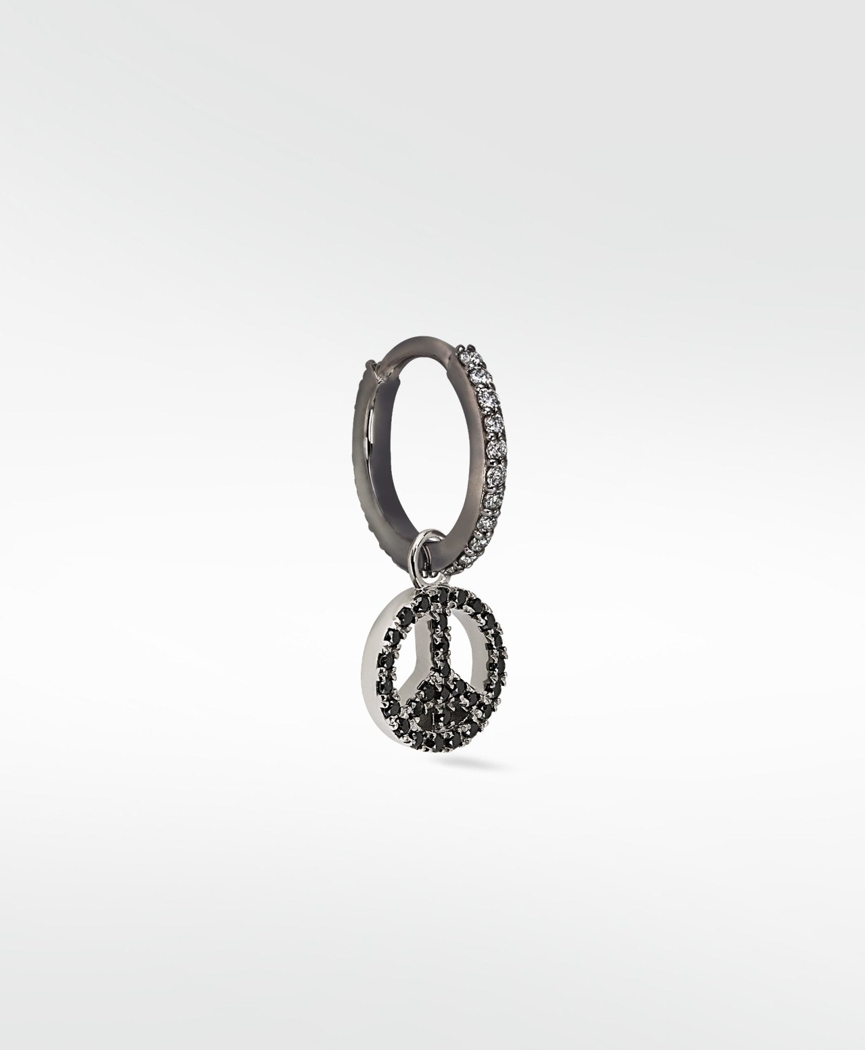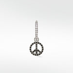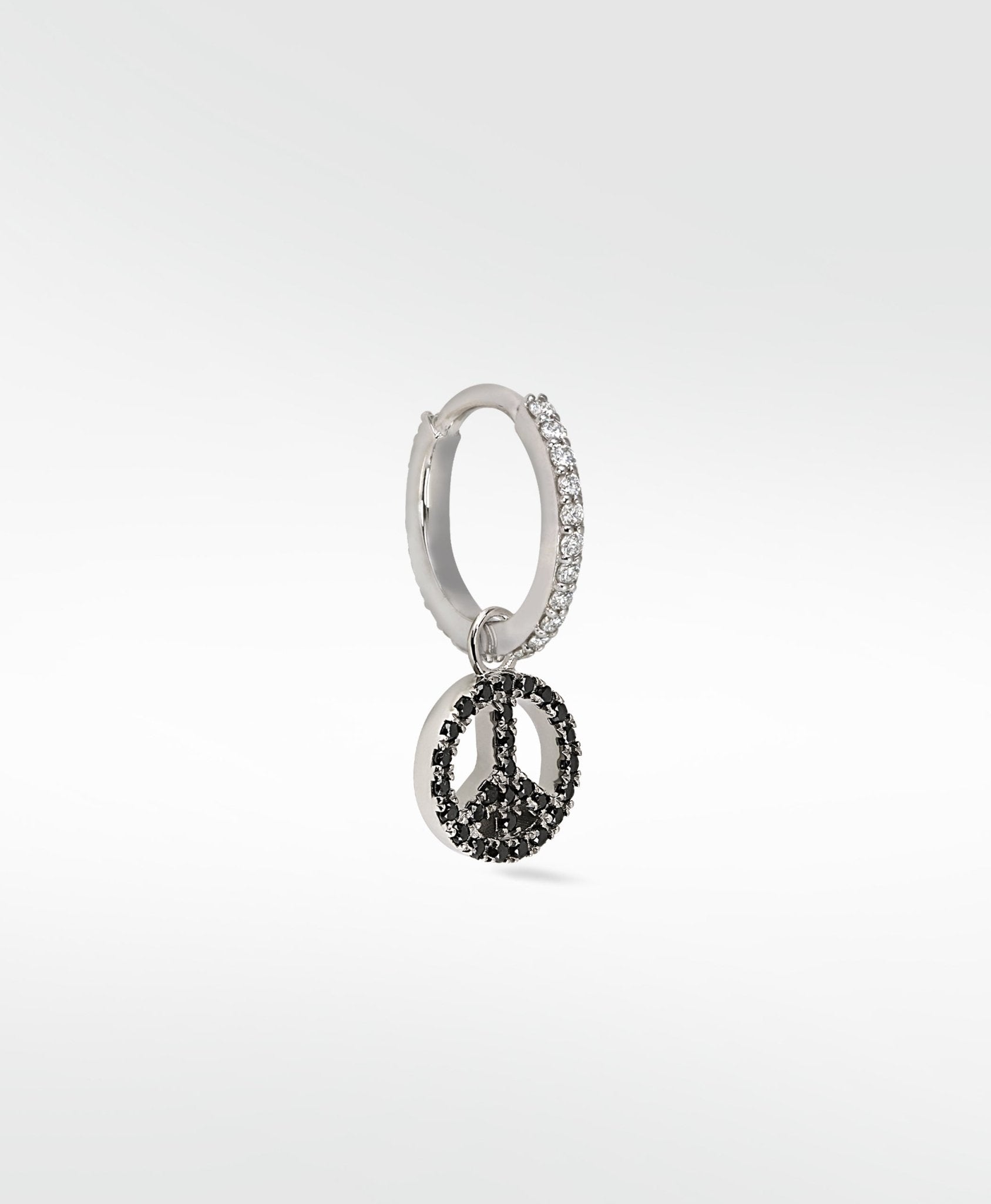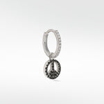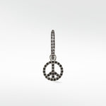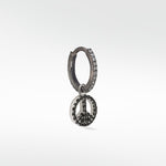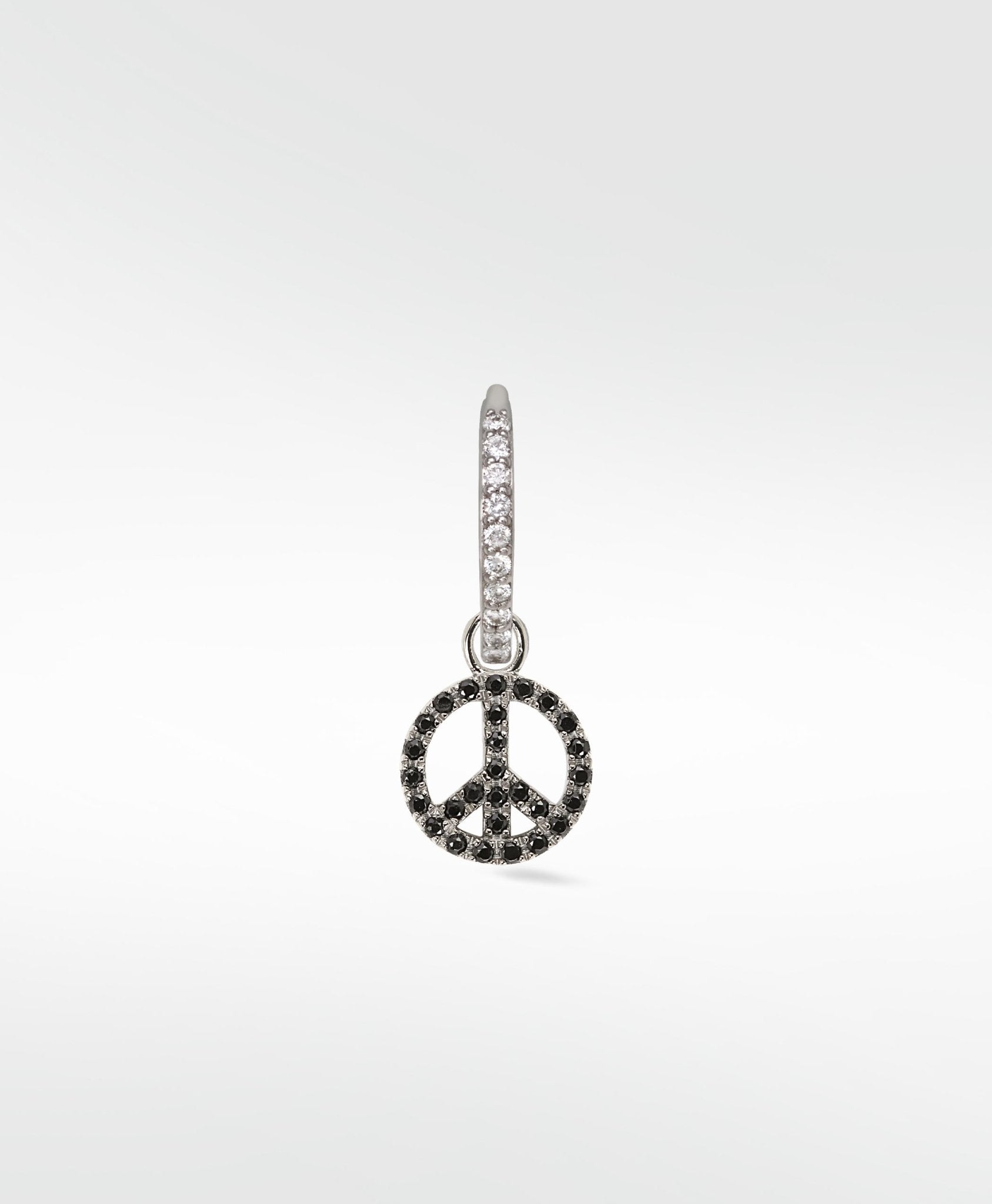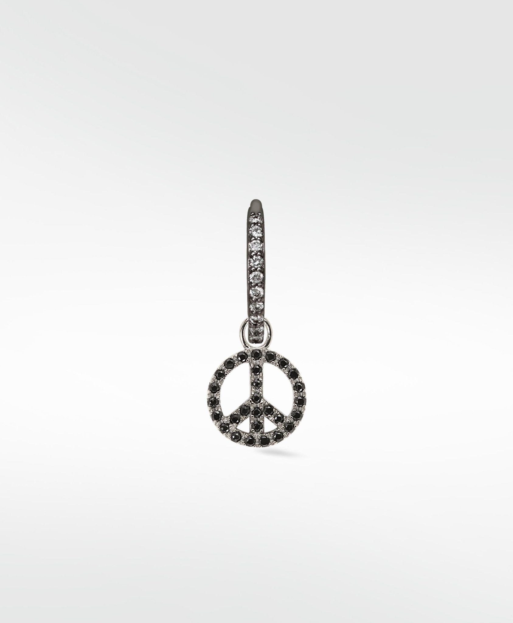 We live in turbulent times... what better way to show you want the world to unite than by sporting this iconic symbol as a charm that can't be ignored? Set with black spinel and finished with black rhodium, the perfect charm to add some mystic to your earring game.