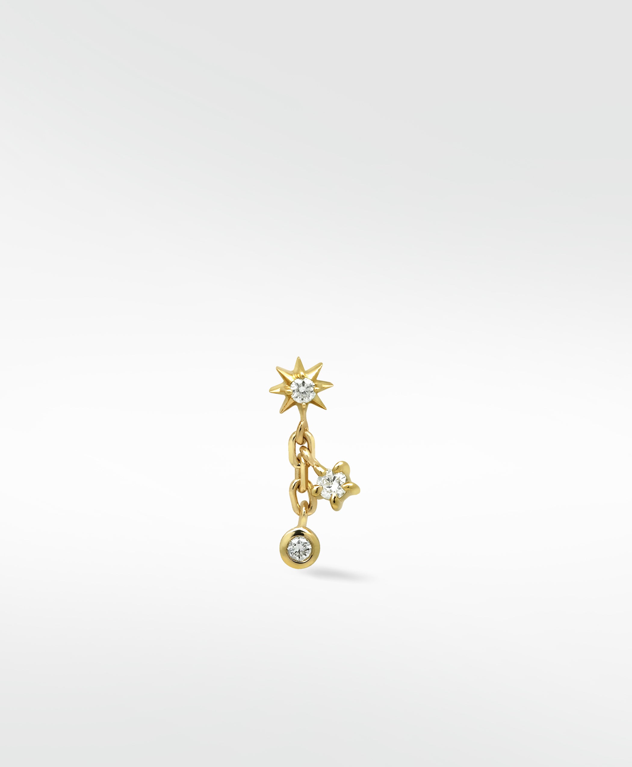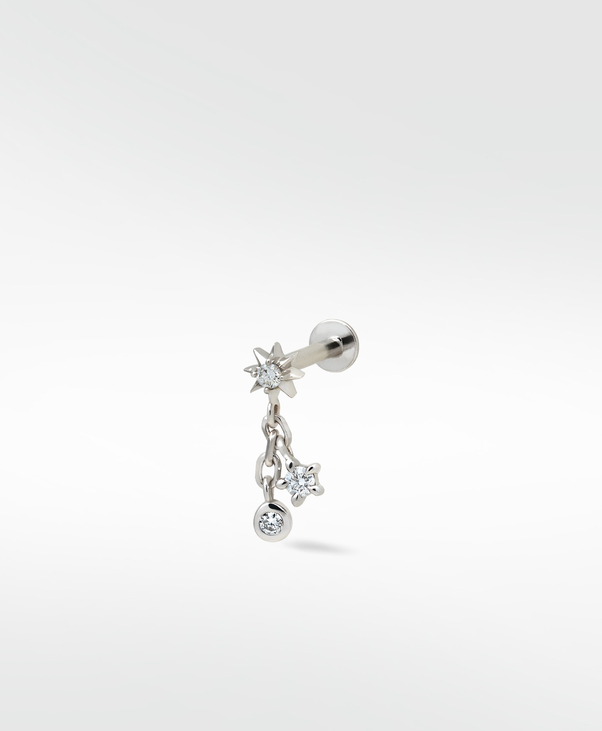Ignite your inner radiance with our captivating Shimmering Star Chain Stud. Inspired by the dazzling splendour of shimmering stars, this labret is crafted in 14K Gold and adorned with brilliant diamonds.