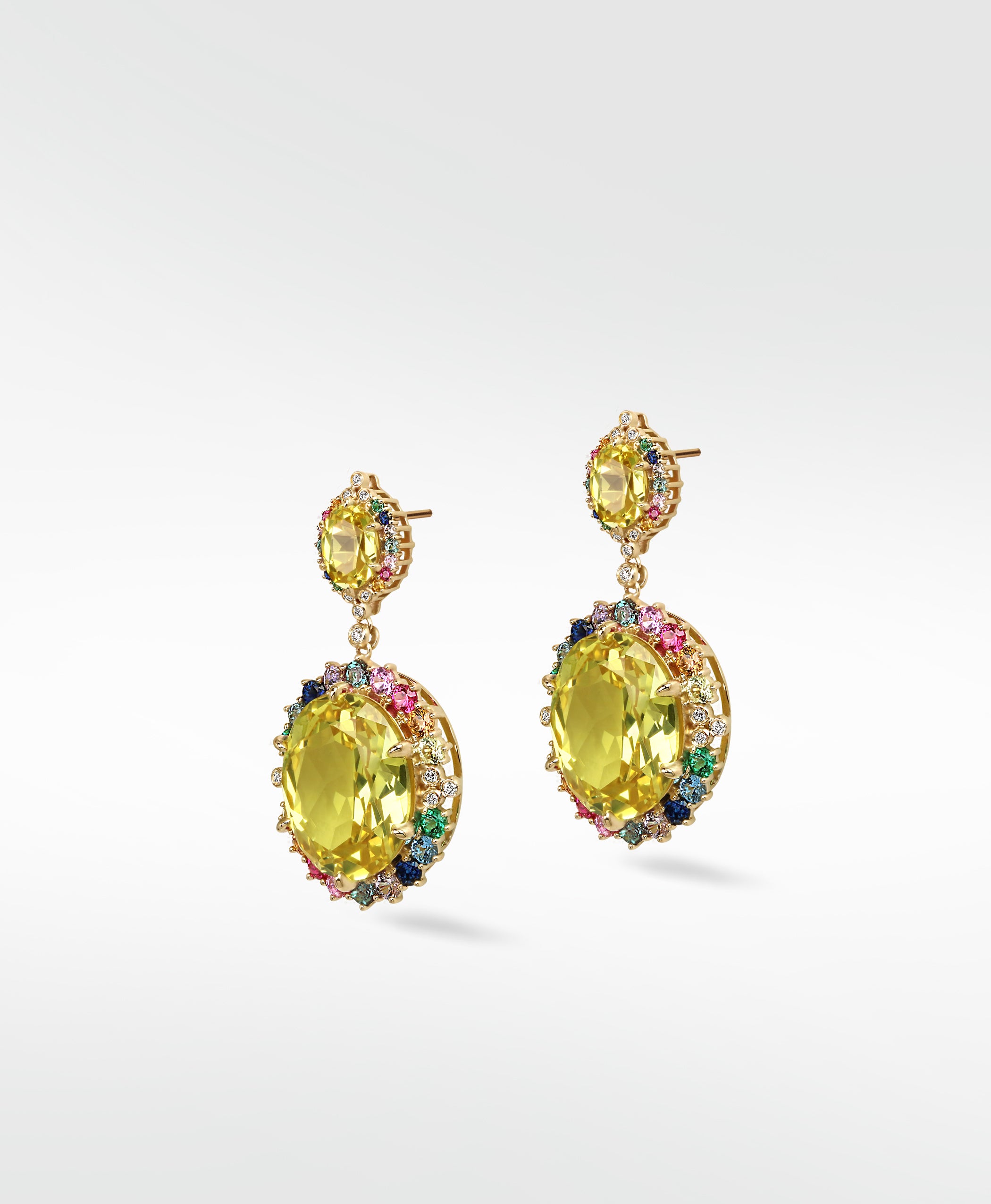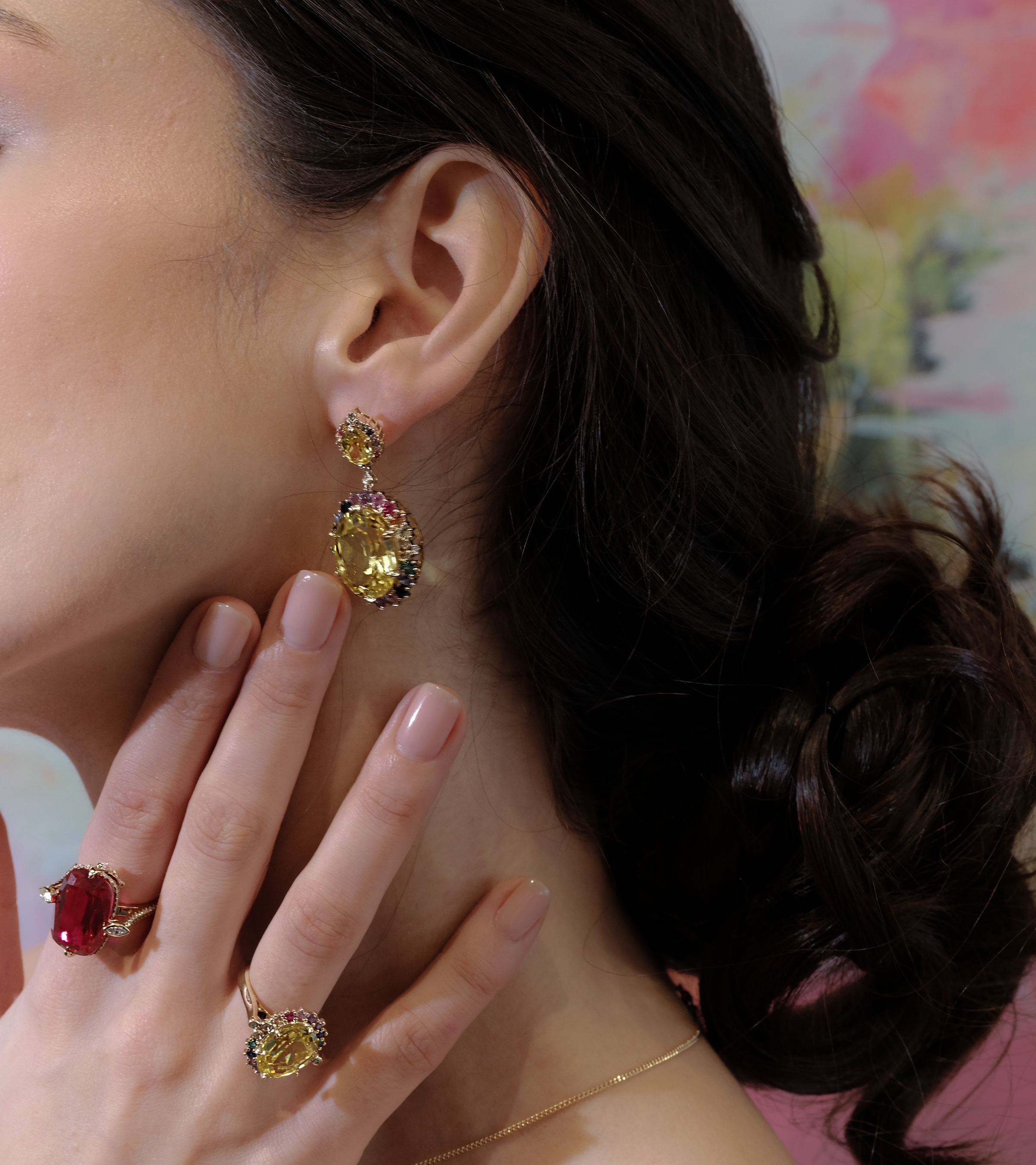Soho Icons — loud, luminous, and impossible to ignore. The radiance of the yellow sapphire steals the spotlight, surrounded by an electric halo of emeralds, rubies, gemstones and diamonds. Each stone is a nod to the neighborhood’s kaleidoscopic spirit — from neon-lit nights to avant-garde galleries, backstreet jazz bars to street-style catwalks.
