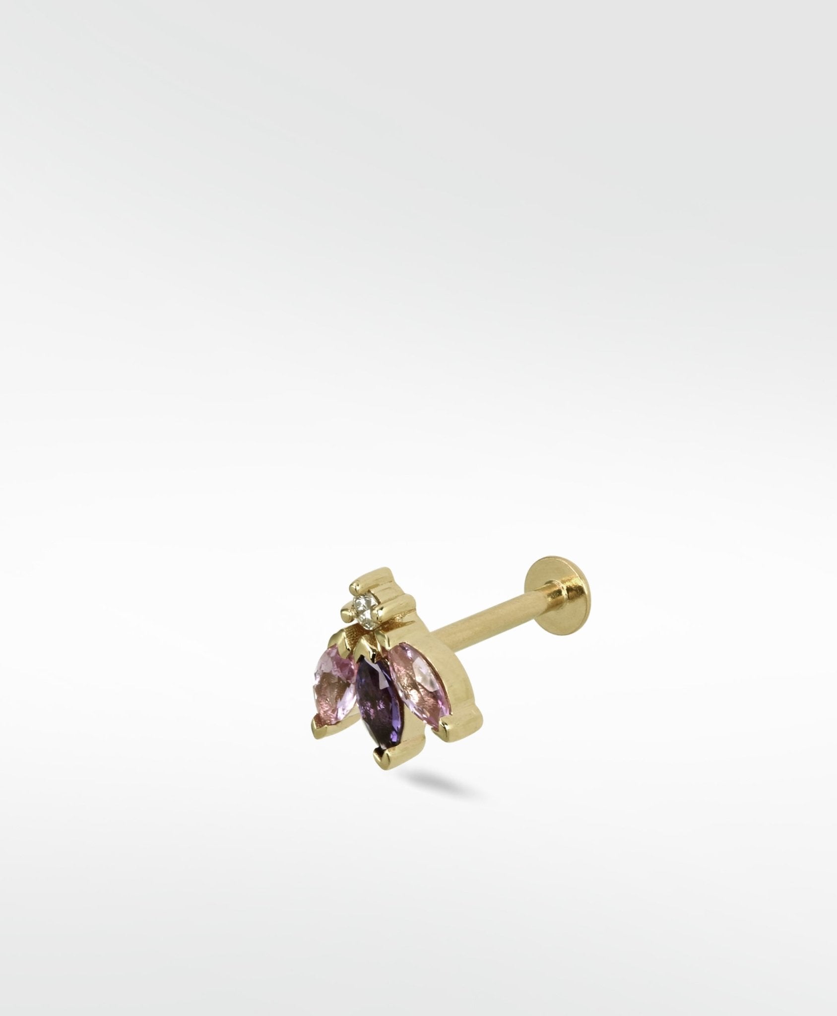 Instead of wearing flowers in your hair, how about some blossom in your ear? Our Veto Blossom Labret Earring exudes floral elegance with vibrant cultured sapphires and a stunning colourless diamond, sure to captivate admirers. Perfect for piercings along the lobe, helix, or conch.