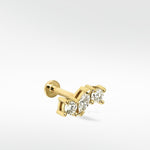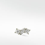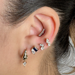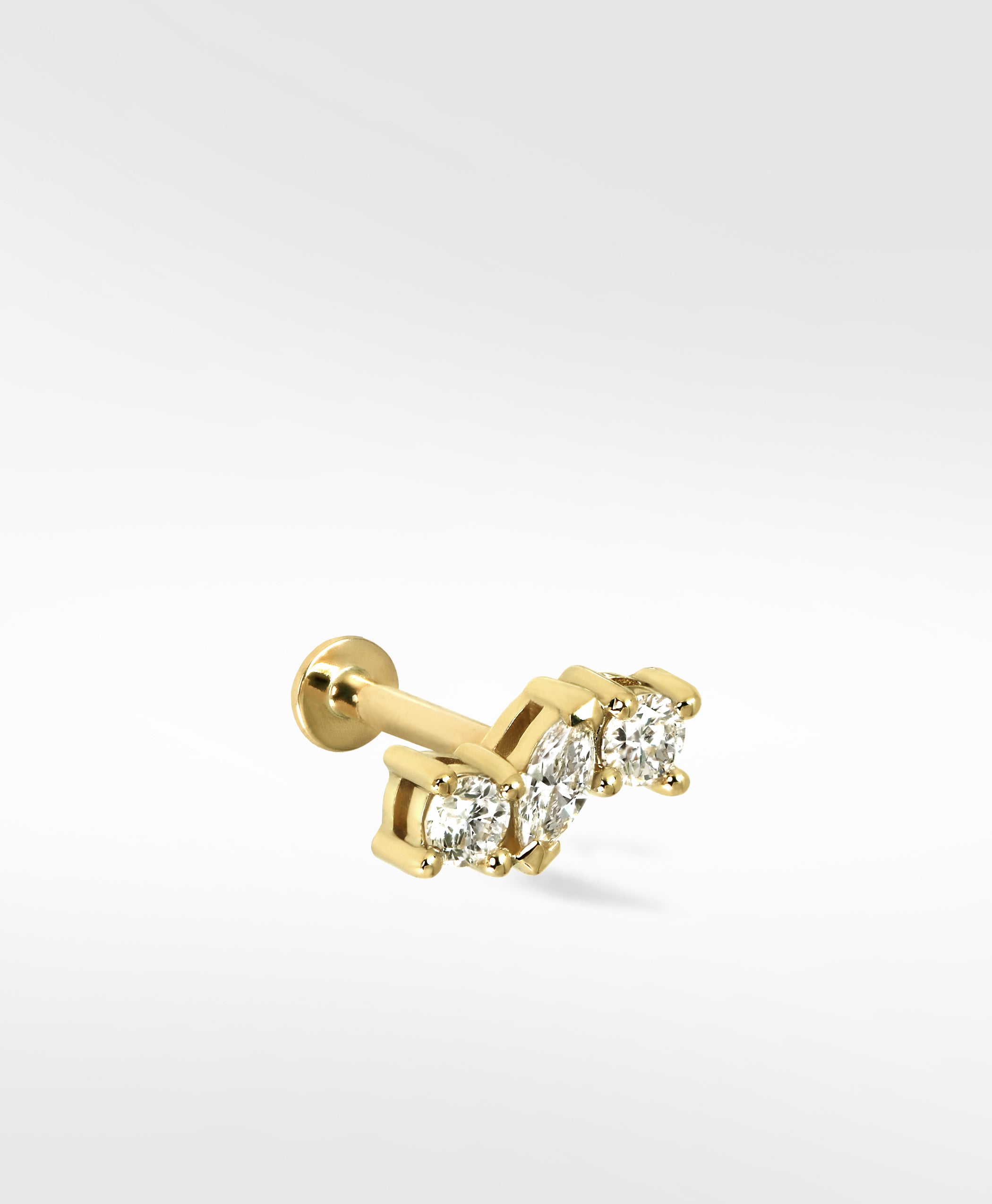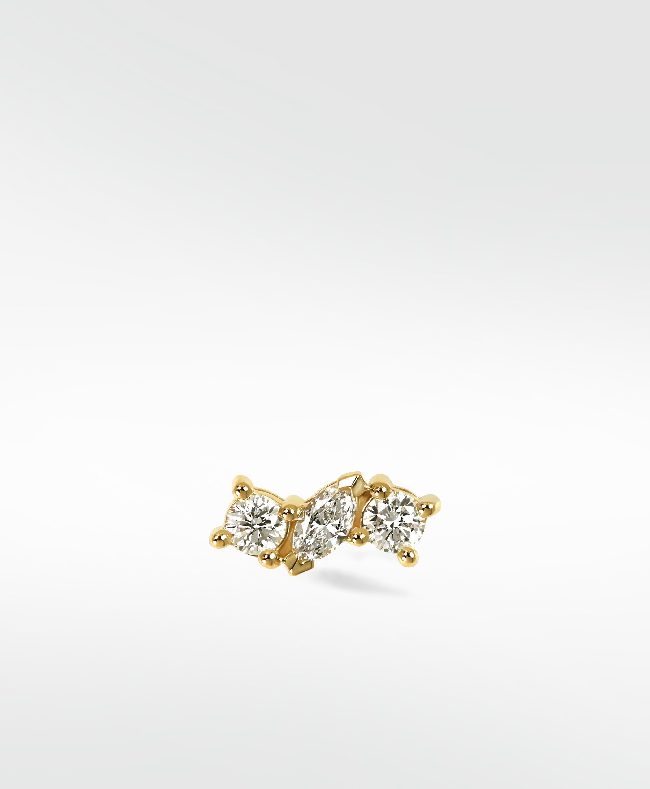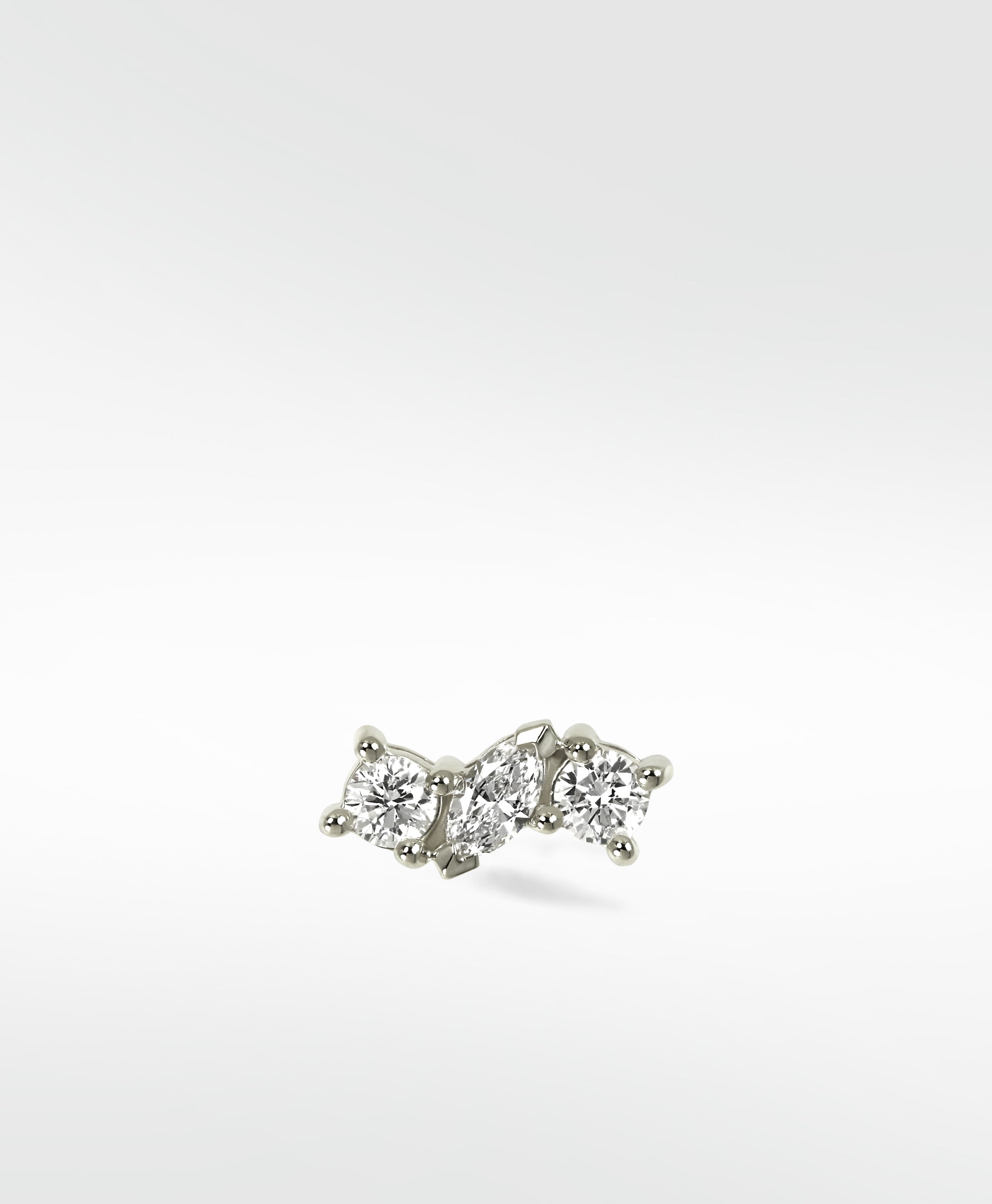 A beautiful marquise diamond nestles between 2 classic round diamonds to create a trio of sophistication. Great for a stacked ear look and equally as stunning on its own.