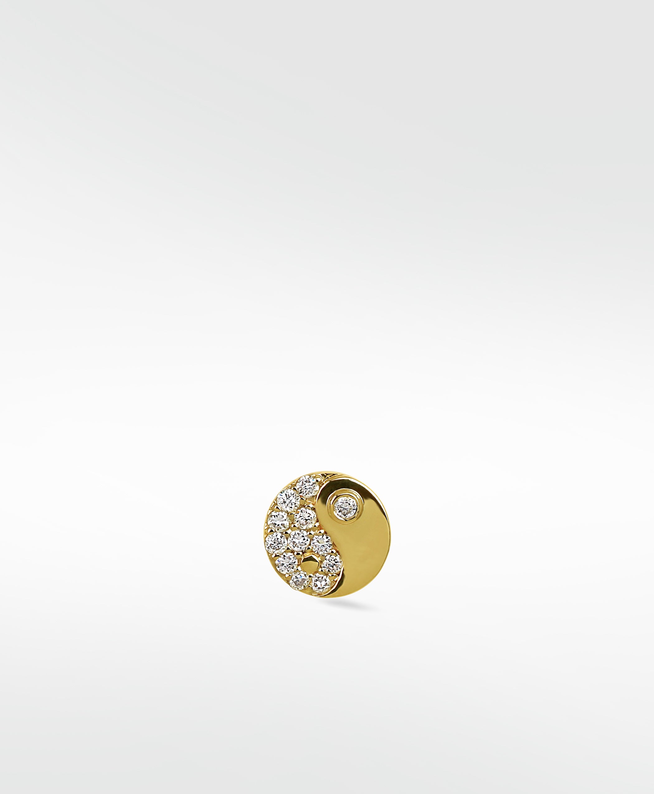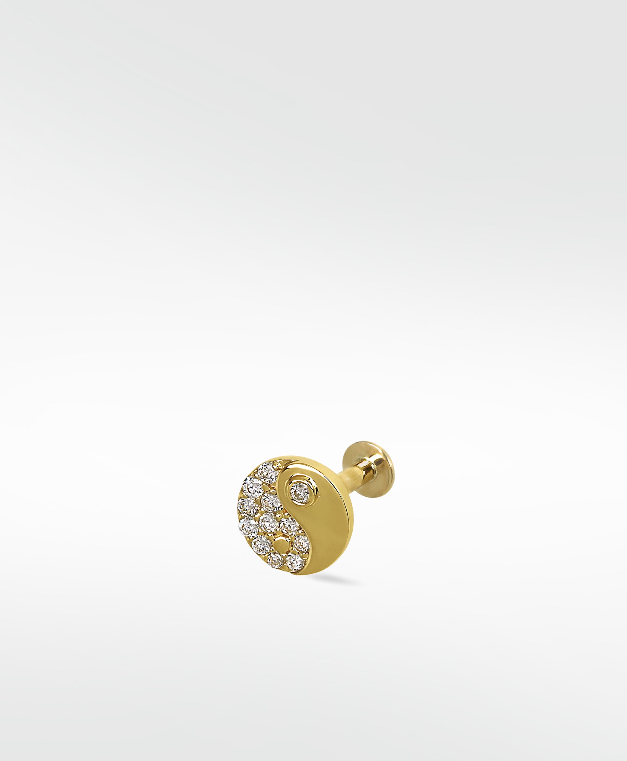 With balance and beauty, our Ying Yang Stud is a symbol of the dualistic nature of the universe. Where gold and diamonds sparkle, and opposite forces are interconnected, after all, you can't get this gorgeous stud without being pierced first!