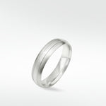 Classic and clean, this simple yet stylish wedding band is definitely one you will not want to take off. With a comfort fit centre, with both brushed and highly polished finishing, its a modern twist on the classic wedding band. Available in white, rose or yellow gold, or platinum, and also a variety of widths, just get in touch for a personalised quote.