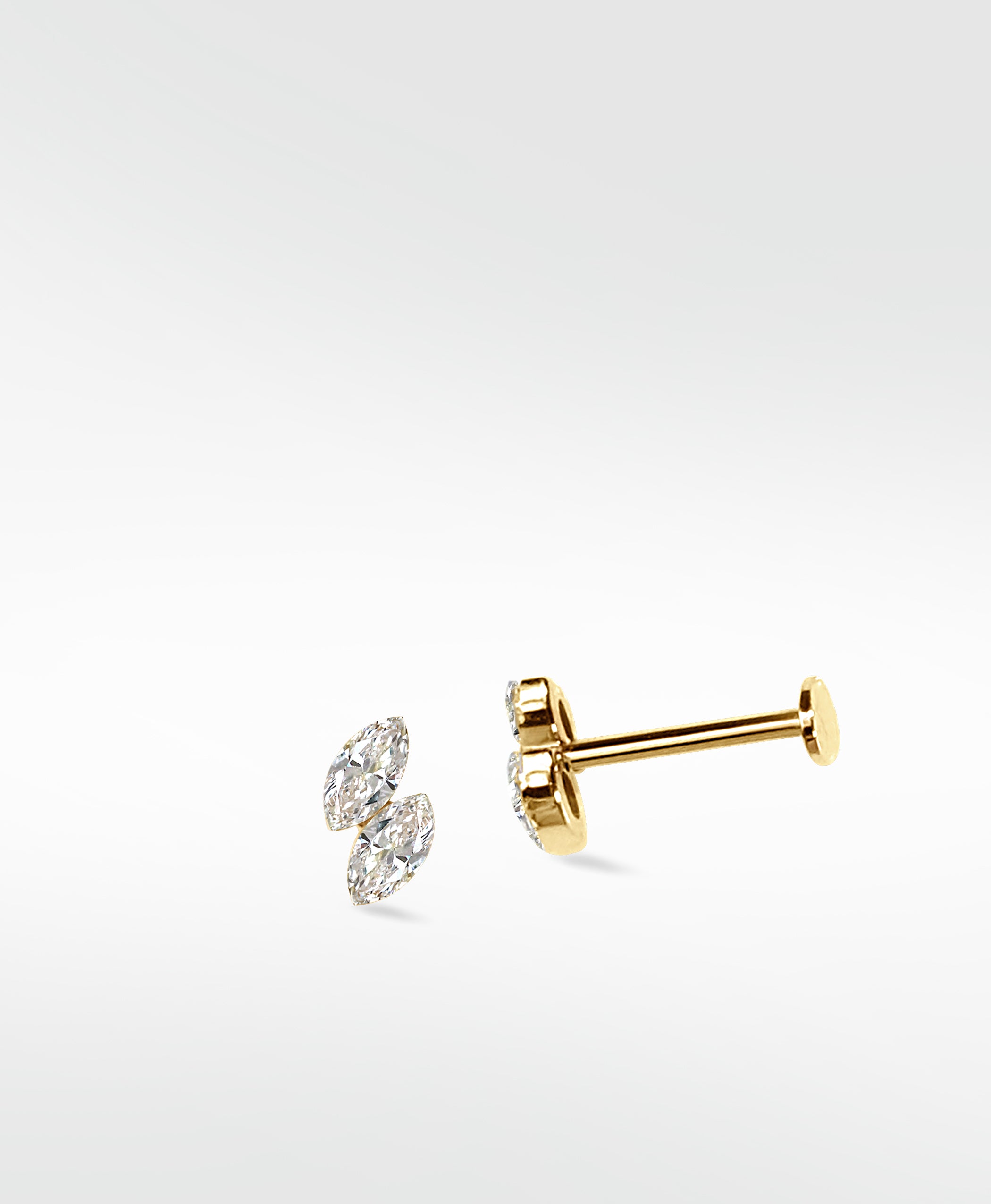 Elegant and effortlessly modern, our Double Marquise Diamond Stud is crafted in 14k gold with an invisible setting for timeless shine. Featuring two perfectly cut marquise diamonds that catch the light from every angle, this versatile stud is gorgeous on any ear placement - from lobe to helix. A refined touch of luxury designed for everyday wear.