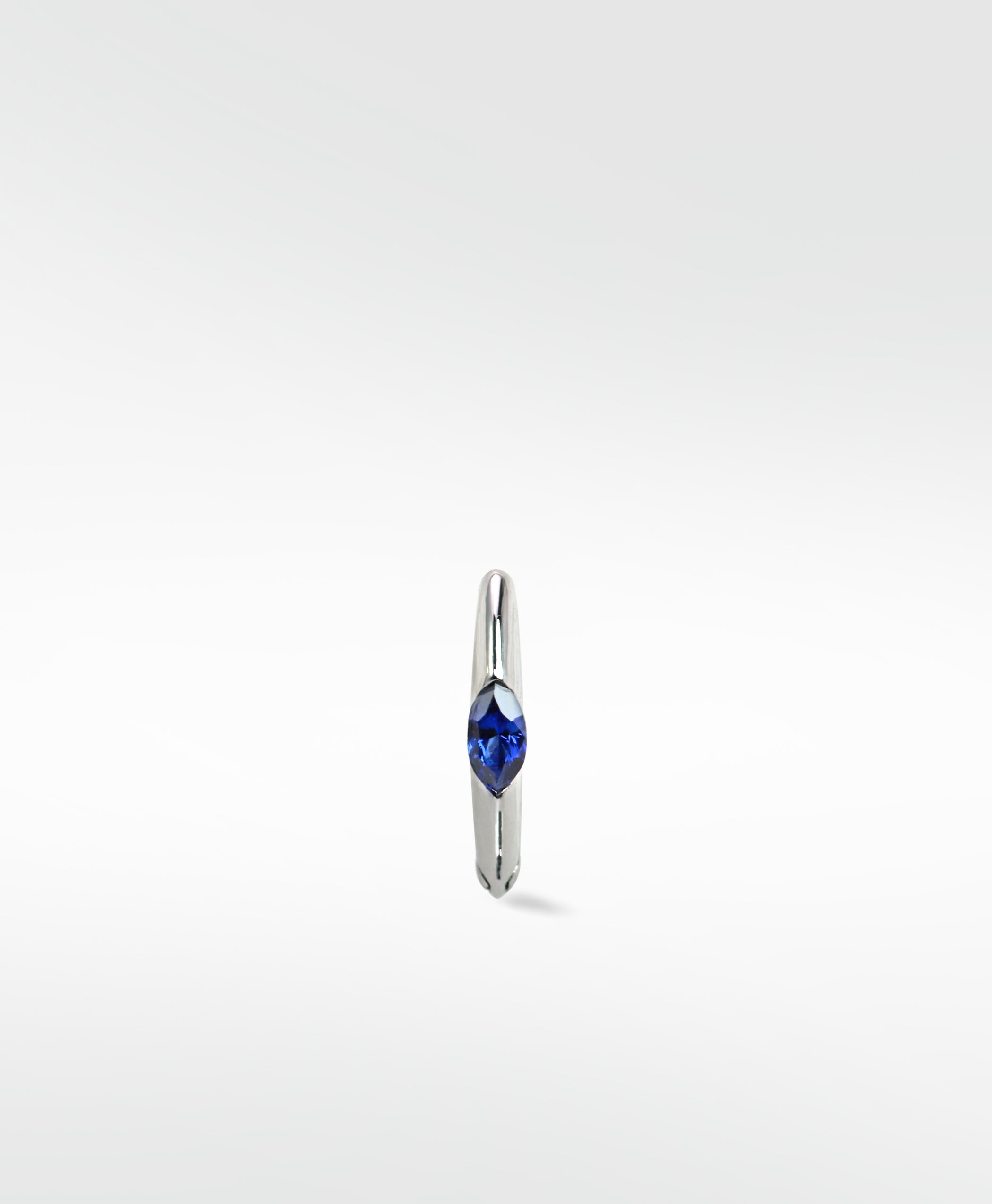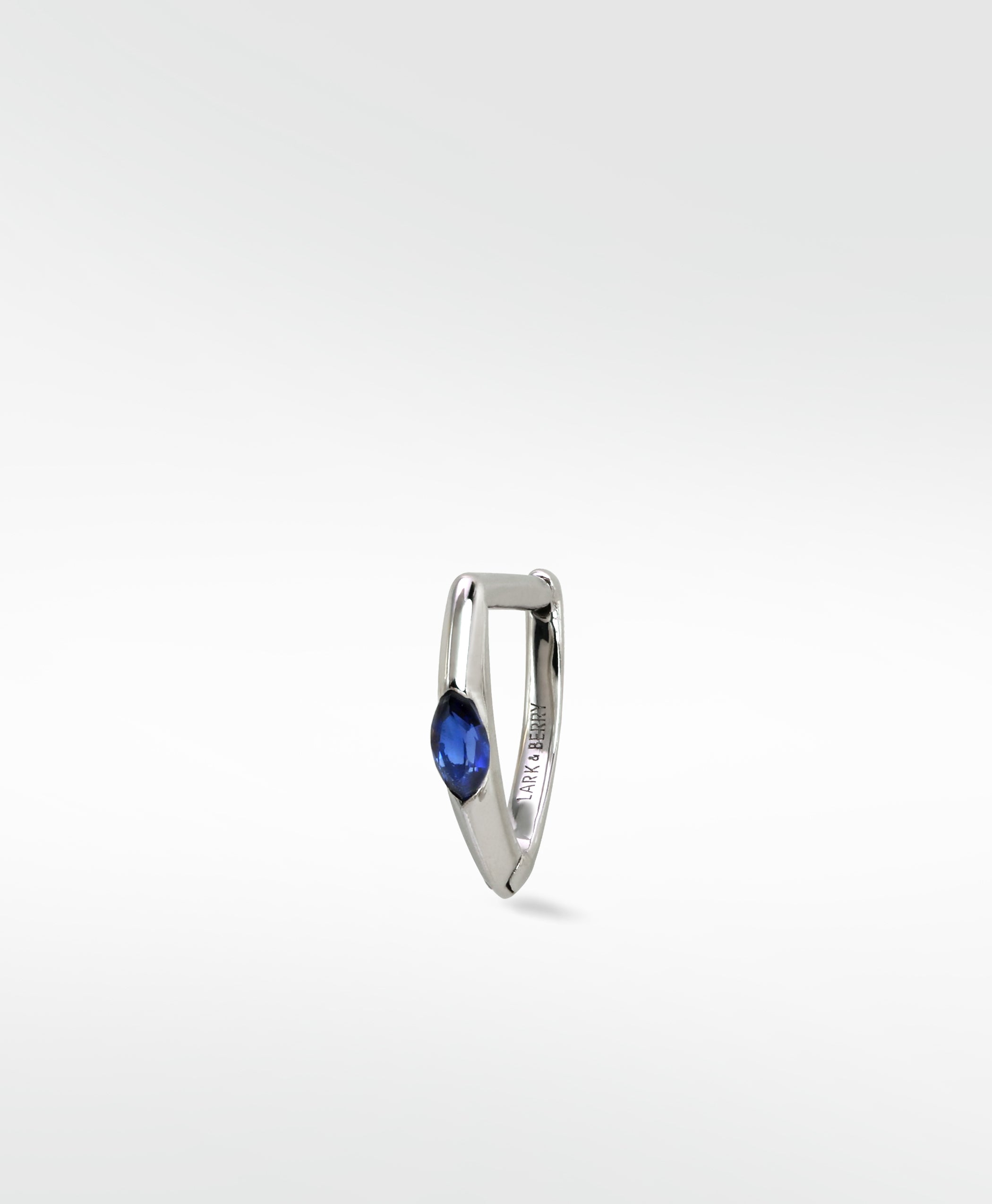 This knife-edged hoop features sharp angles for a stylish and edgier look. The unusual shape of the hoop combined with the little marquise cut stone makes for the perfect piece for your ear stack. An excellent choice for a mismatched look or as a statement hoop on the lobe or helix.