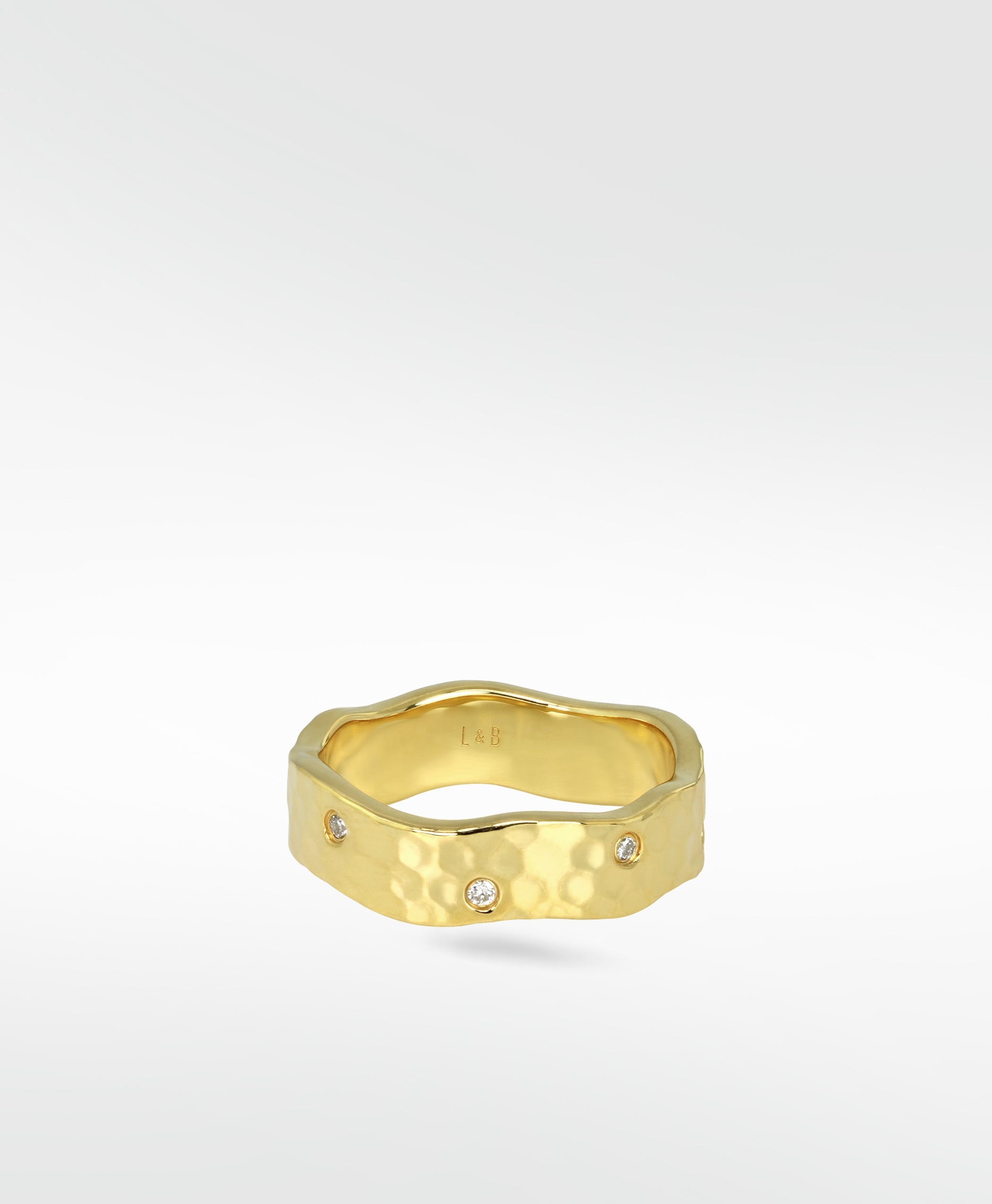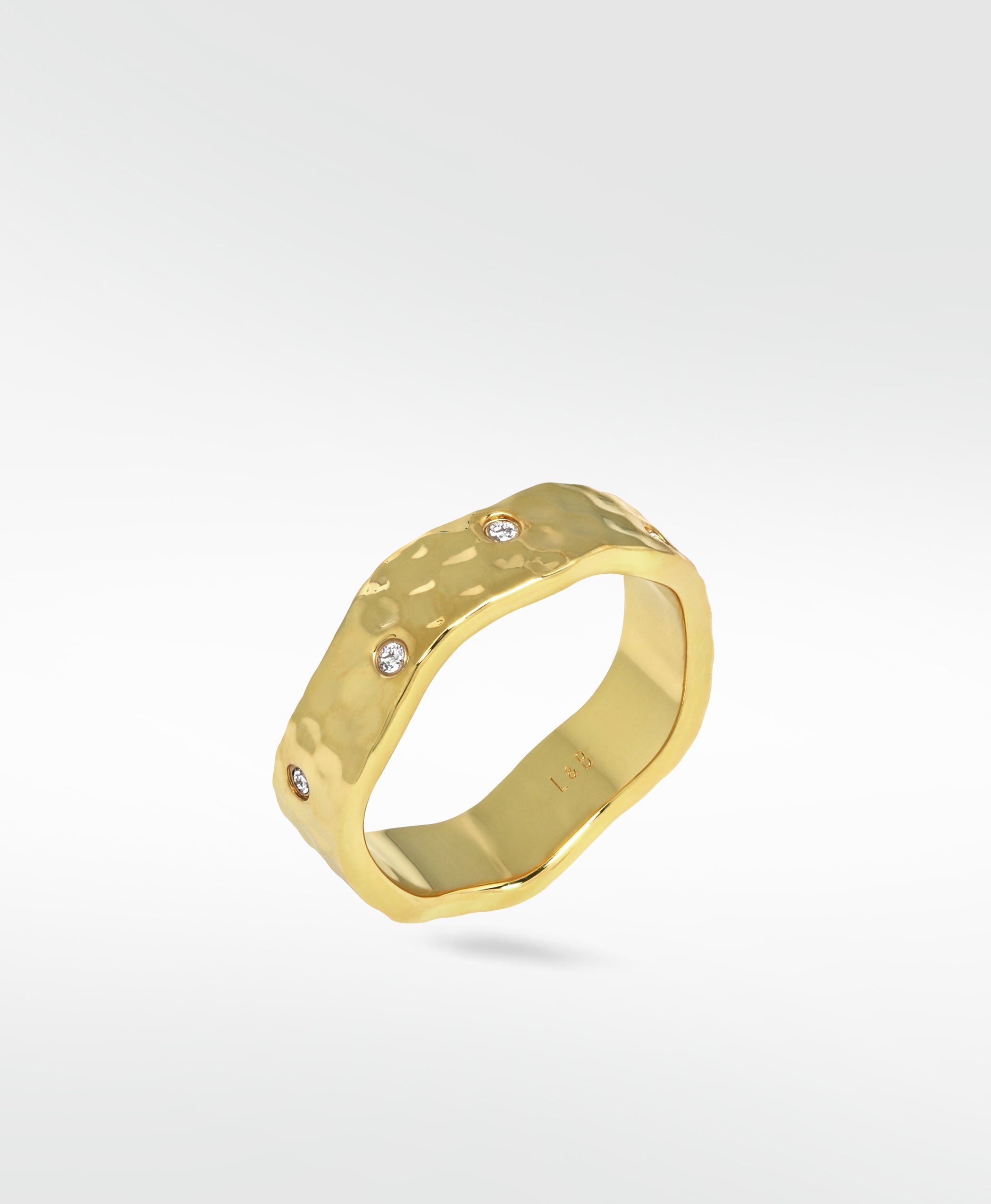 Sparkling diamonds punctuate this textured ring to add a subtle glimmer reminiscent of the sun rays reflecting on the sea. Made in silver with 18K recycled gold vermeil, this Formed Diamond Ring is perfect to stack and layer.