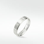 Classic and clean, this simple yet stylish wedding band is definitely one you will not want to take off. With a comfort fit centre, satin finished and striped detailing, its a modern twist on the classic wedding band. Available in white, rose or yellow gold, or platinum, and also a variety of widths, just get in touch for a personalised quote.