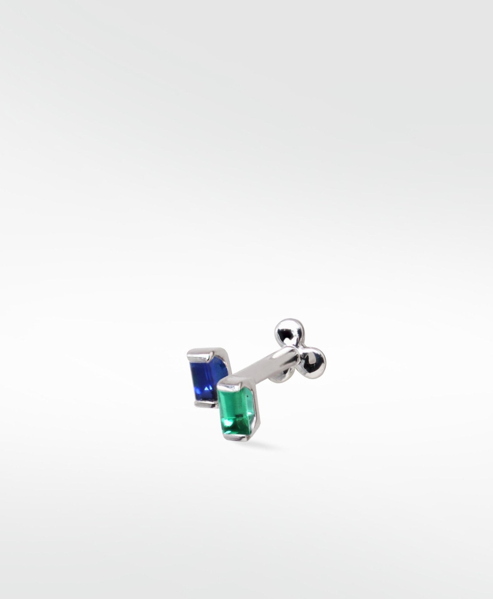 • Omnis Double Baguette Emerald and Blue Sapphire Stud - 0.20ct